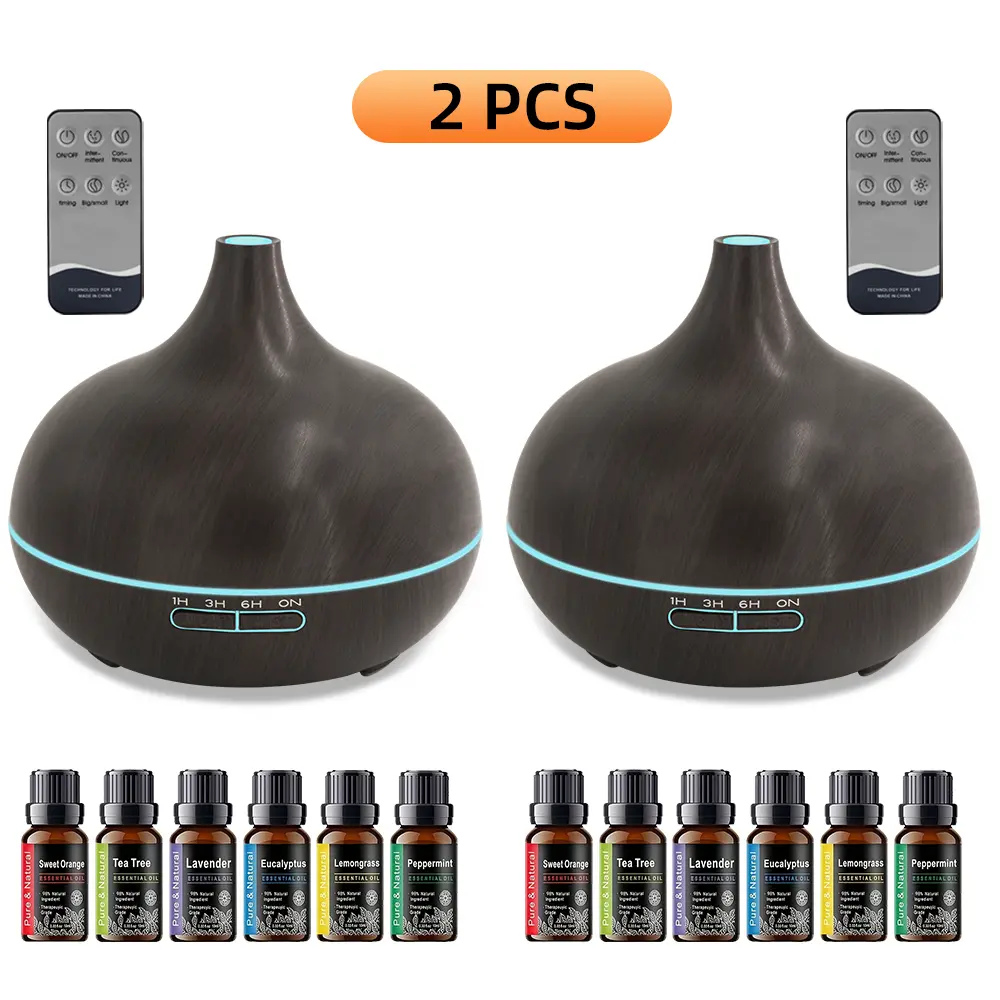 Extra Large 550ml Essential Oil Diffuser More Runtime, More Benefits! Wood Grain Design, Remote, 7 Color LED, 6 Oils Better Than Small Diffusers for Home & Office