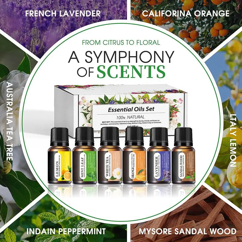 Enhance your living space with these aromatic oils. Use them in humidifiers or diffusers for a soothing ambiance. The set also supports aromatherapy, aiding in relaxation and well-being. Choose the right oil for your mood or environment. Experience the benefits of natural fragrances in every bottle.