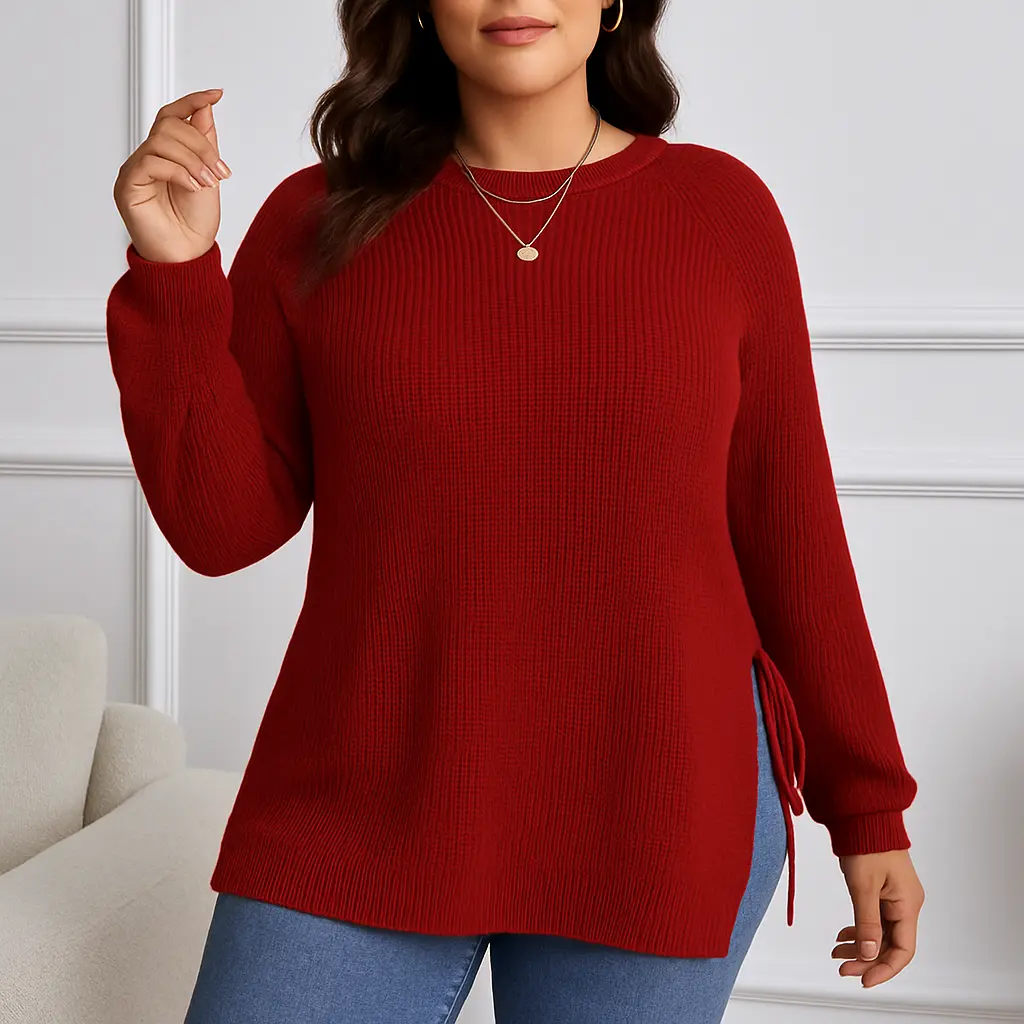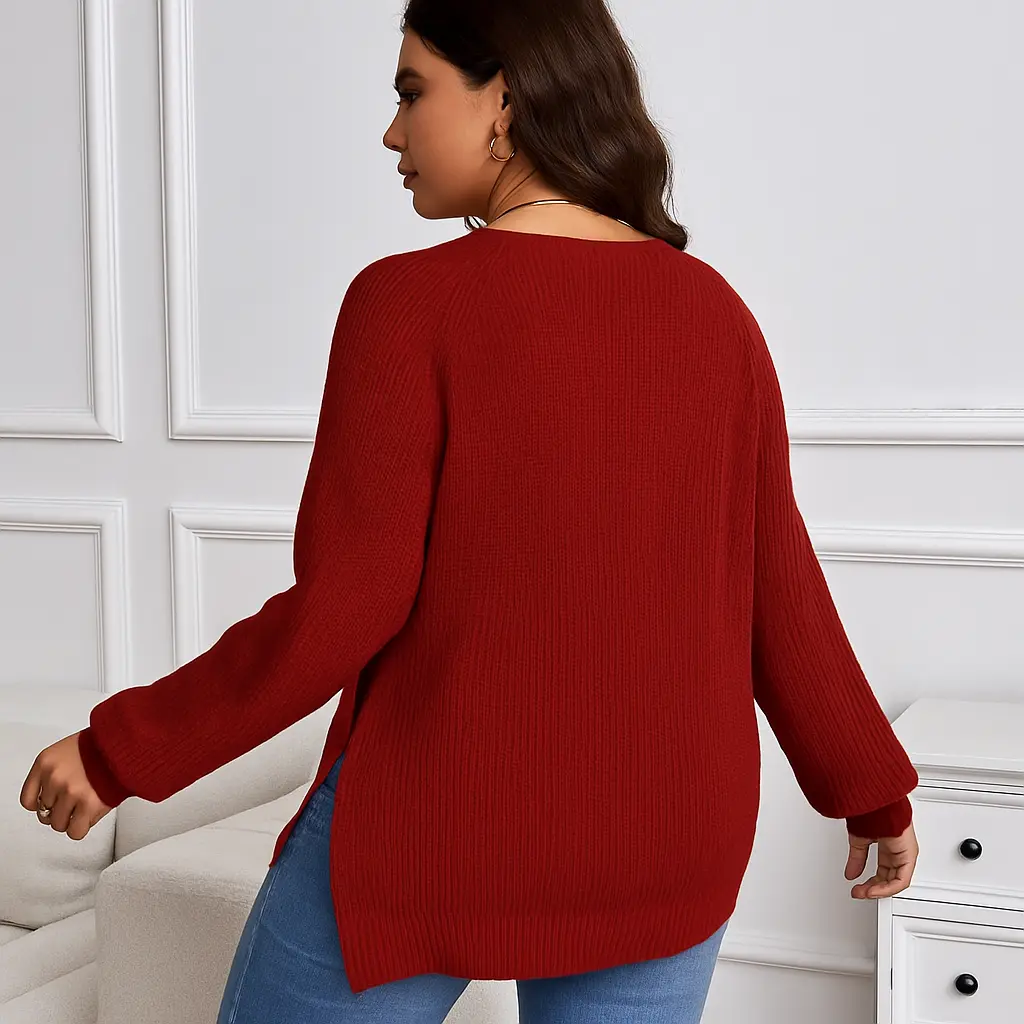 Essential Side-Slit Pullover - Red Pullover Style for Everyday Wear with Modern Side-Slit Detailing