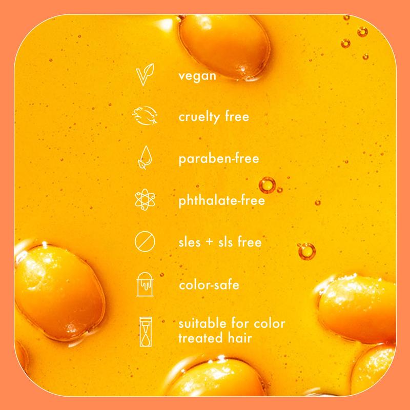 • sea buckthorn: our signature ingredient that’s loaded with vitamin C, A, fatty acid omega 7 + antioxidants making it the ultimate holy grail ingredient for hair + scalp. "