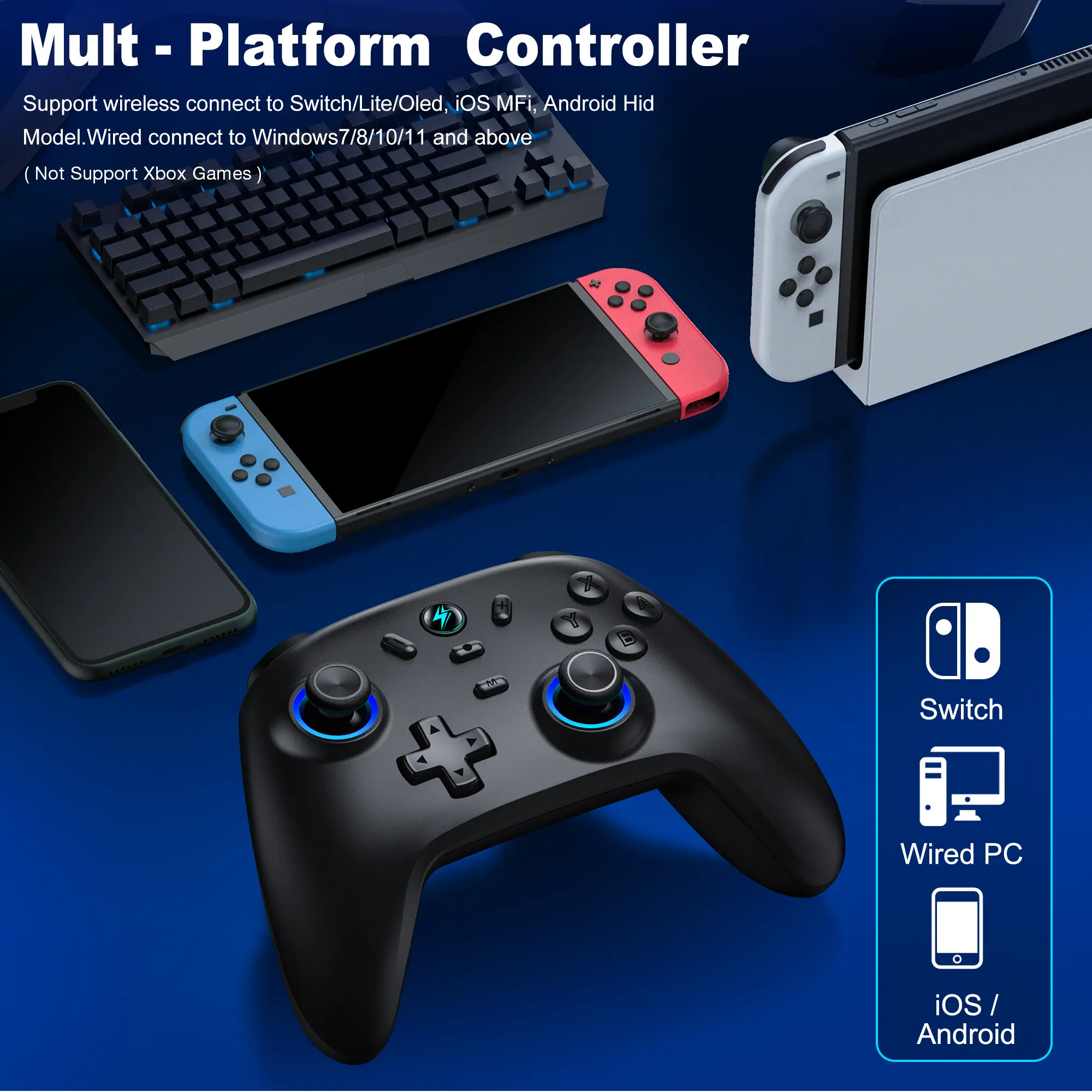 【WIDELY COMPATIBLE SWITCH REMOTE】 The switch pro controller is compatible with Nintendo Switch Pro/Lite/OLED/iOS/Android/Windows PC. Nintendo switch pro controller supports all games & game platforms that support HID mode on Android devices, and games on iOS that support MFI protocol (require iOS 13.0 and above). Pro controller switch also supports all games and Steam that support X-Input mode on Windows PC (require Windows 7 and above). An ideal switch gamepad for family and party