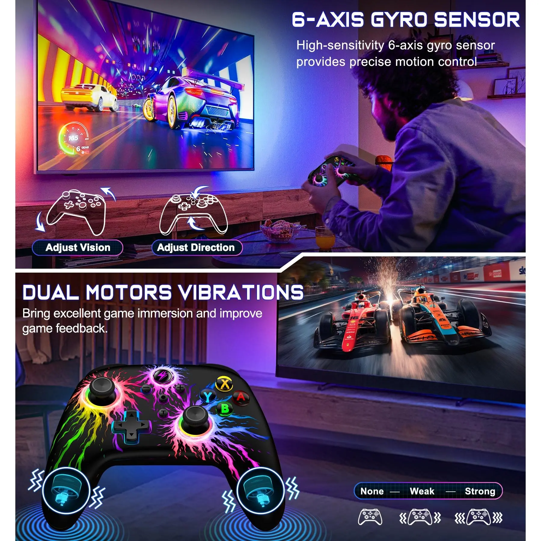 ·【VIBRATION FUNCTION ONLY FOR SWITCH/WINDOWS PC】Built-in dual vibration motors with 3-level vibration feedback: None, Weak and Strong. which provide you excellent vibration feedback to enhance the game immersion in switch games and windows pc computer games. Press and hold L, R, ZL, ZR at the same time to cycle through the vibration intensity.