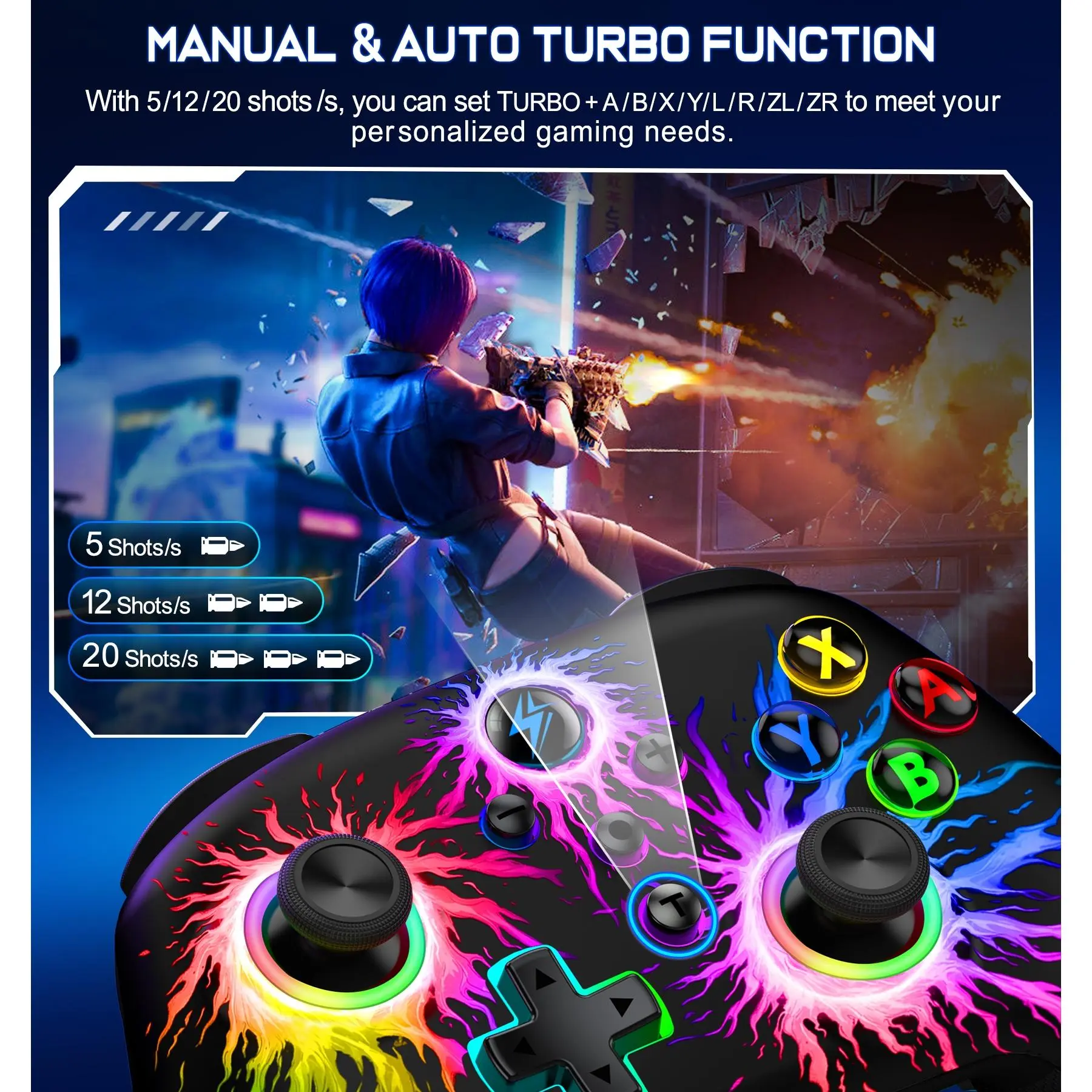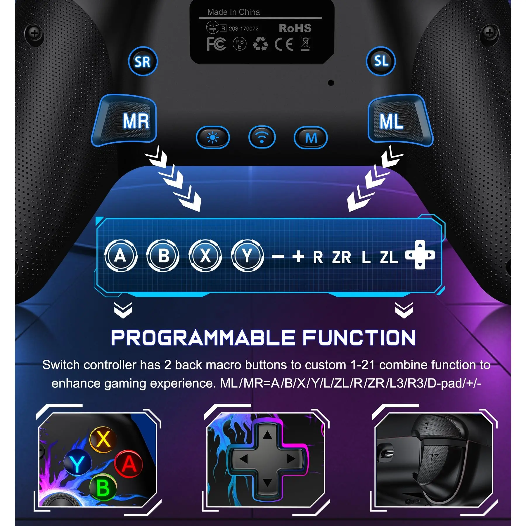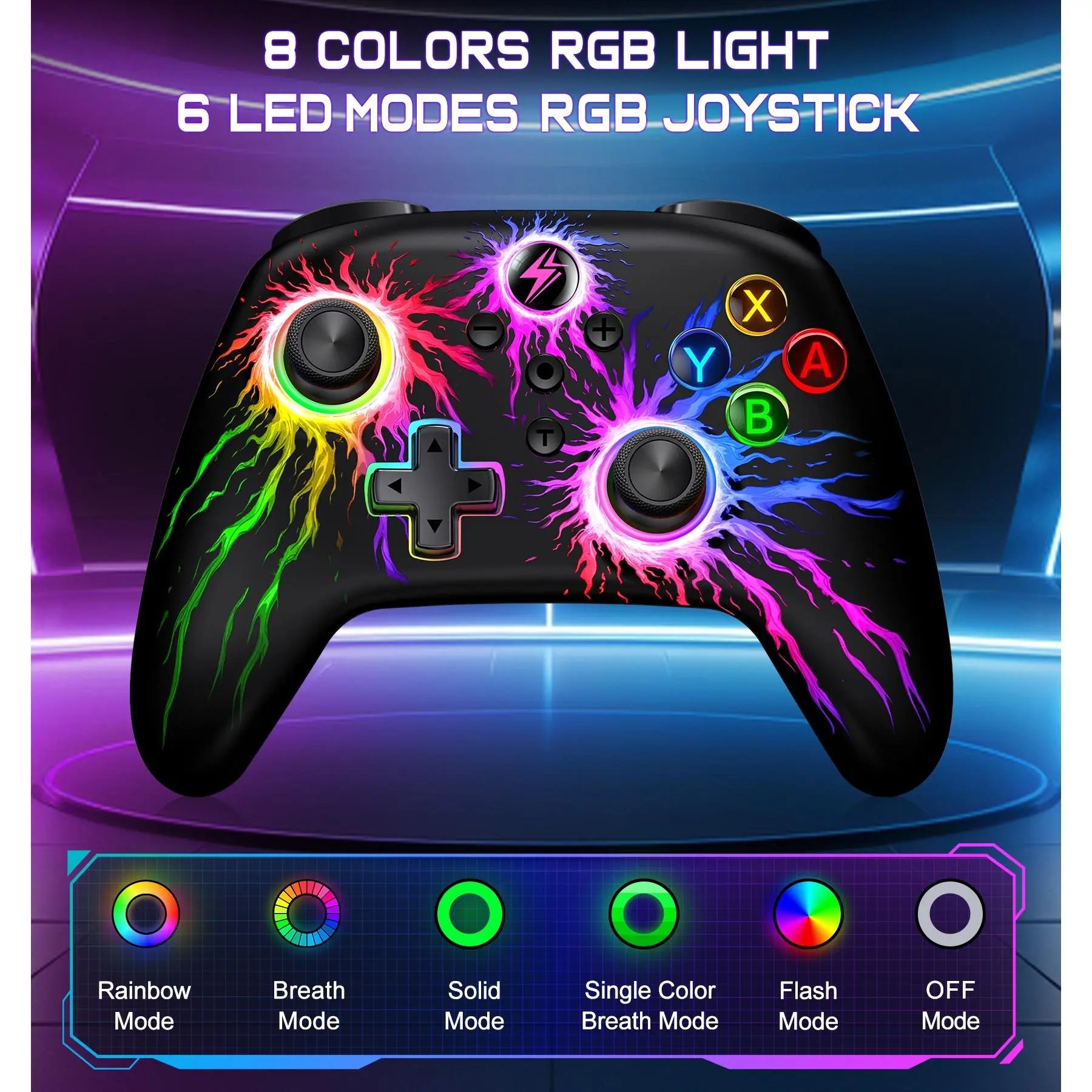 ·【Cool LIGHTS SWITCH CONTROLLER 】 LED Light switch pro controller forms a cool game lighting atmosphere. 6 different LED modes: Colorful mode, Breathing Colorful, Solid LED of 7 colors/Breath LED of 7 colors/Flashing LED/LED off. The memory function will go to the last LED mode. And you also can adjust the brightness of LED. (Not Support NFC Function)
