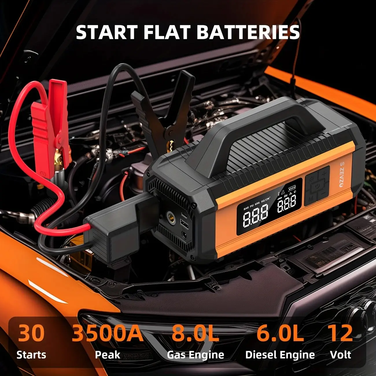 Simply connect the jump starter to your engine. The digital display will show the battery status. Use the provided USB cable for charging. The compact design makes it easy to carry. Perfect for emergencies.