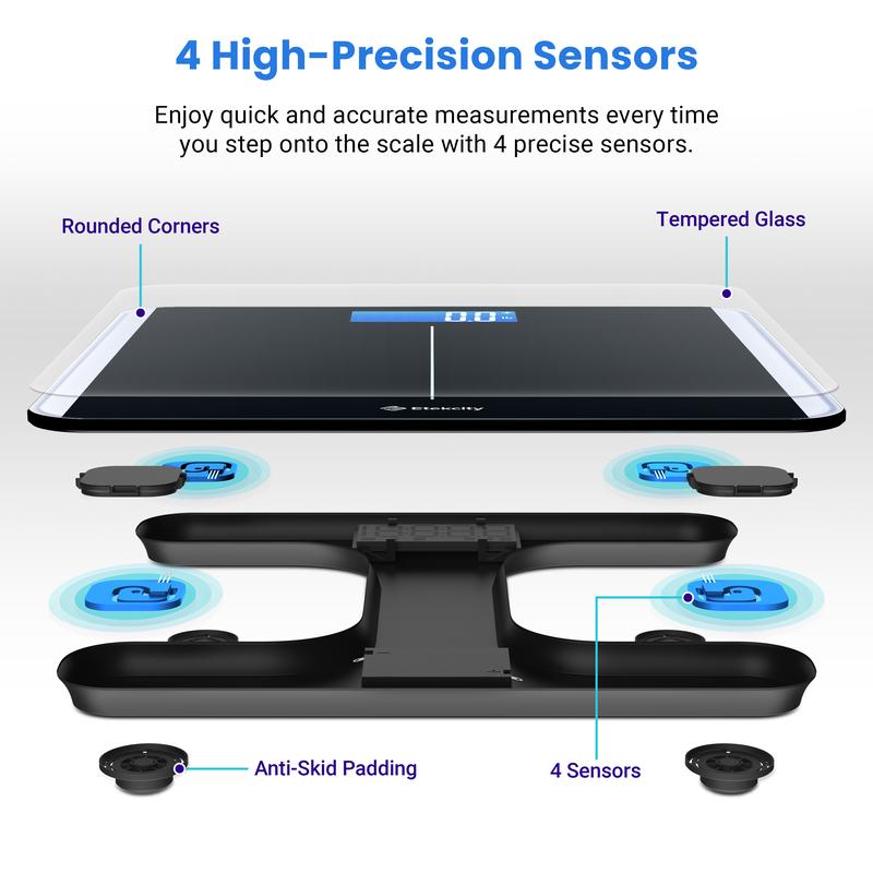 ·Smart Measurement: Upgraded from our popular EB9380H body weight scale model, this scale comes with a 11x11 inch compact platform and safer rounder-corner design. Connect the scale to your smartphone using Bluetooth, so you can easily track weight and BMI data over time