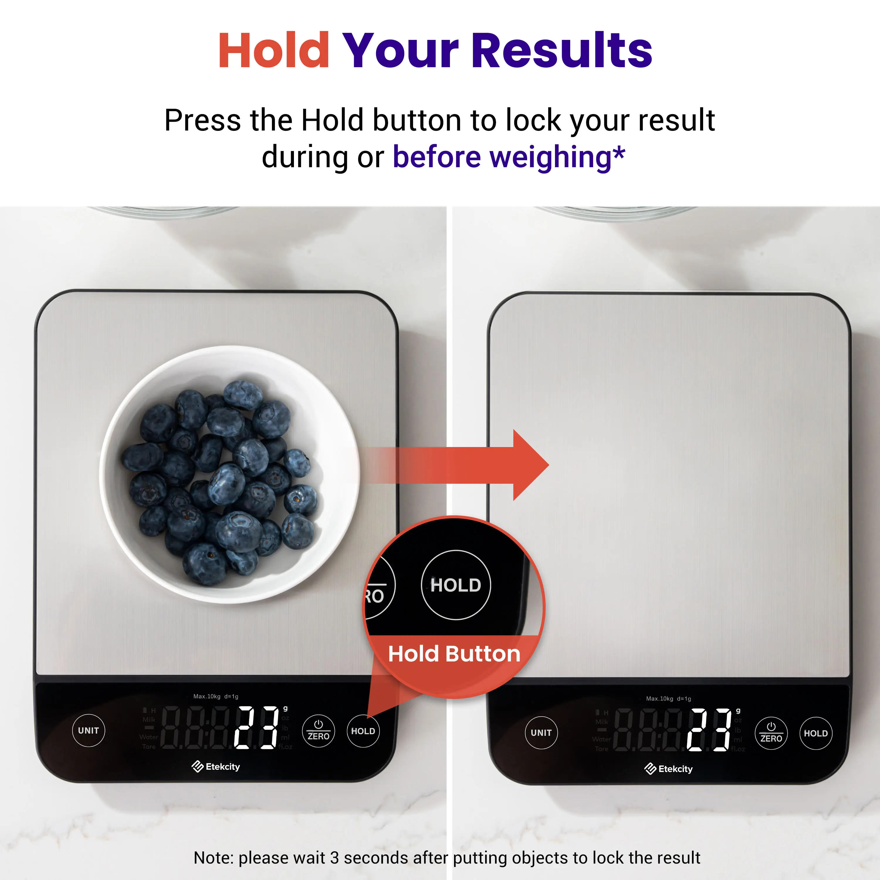 ·Bonus Features: Use the tare feature and hold function for added convenience