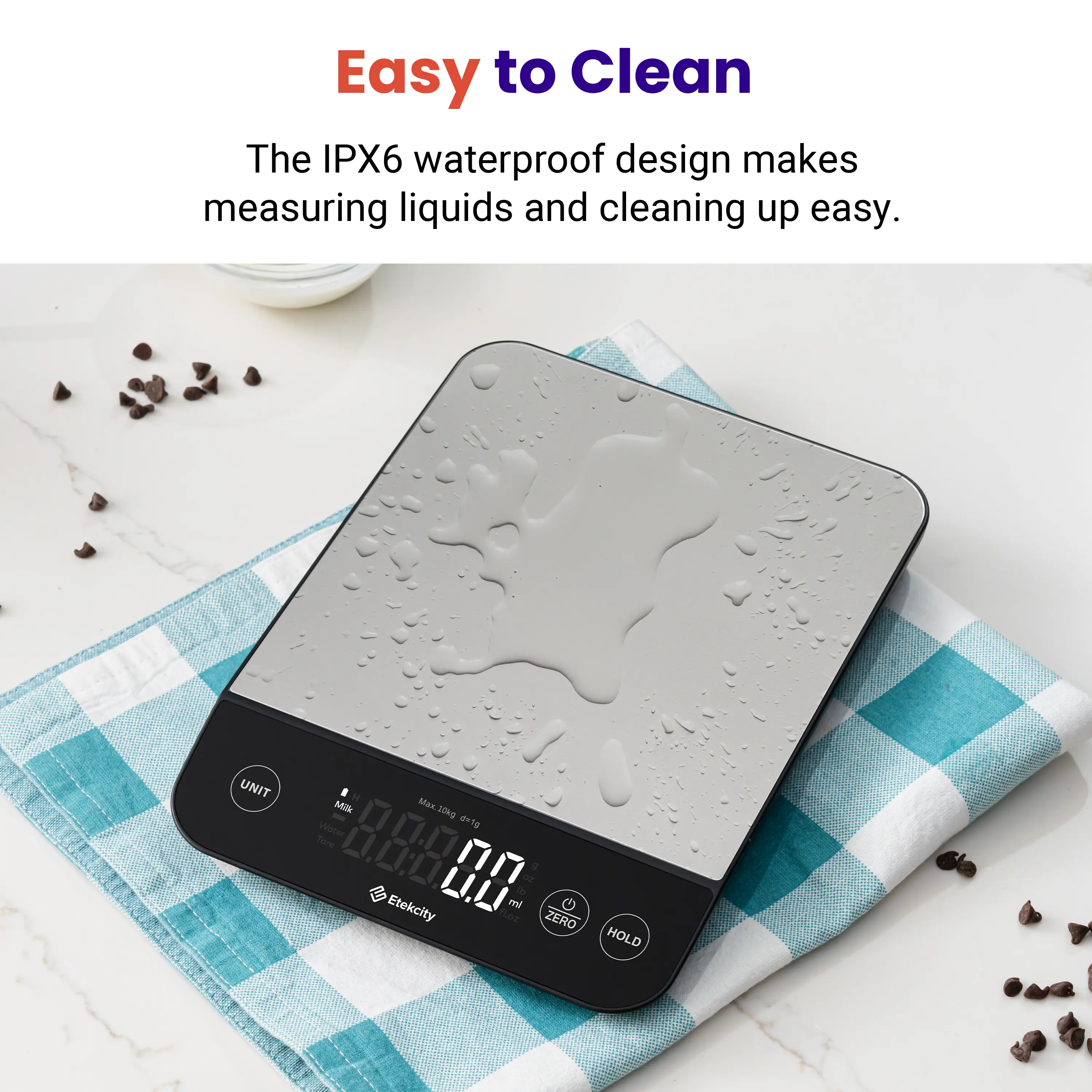 ·Waterproof Design: Features an IPX6 waterproof design, allowing you to easily measure liquids and wipe the scale clean