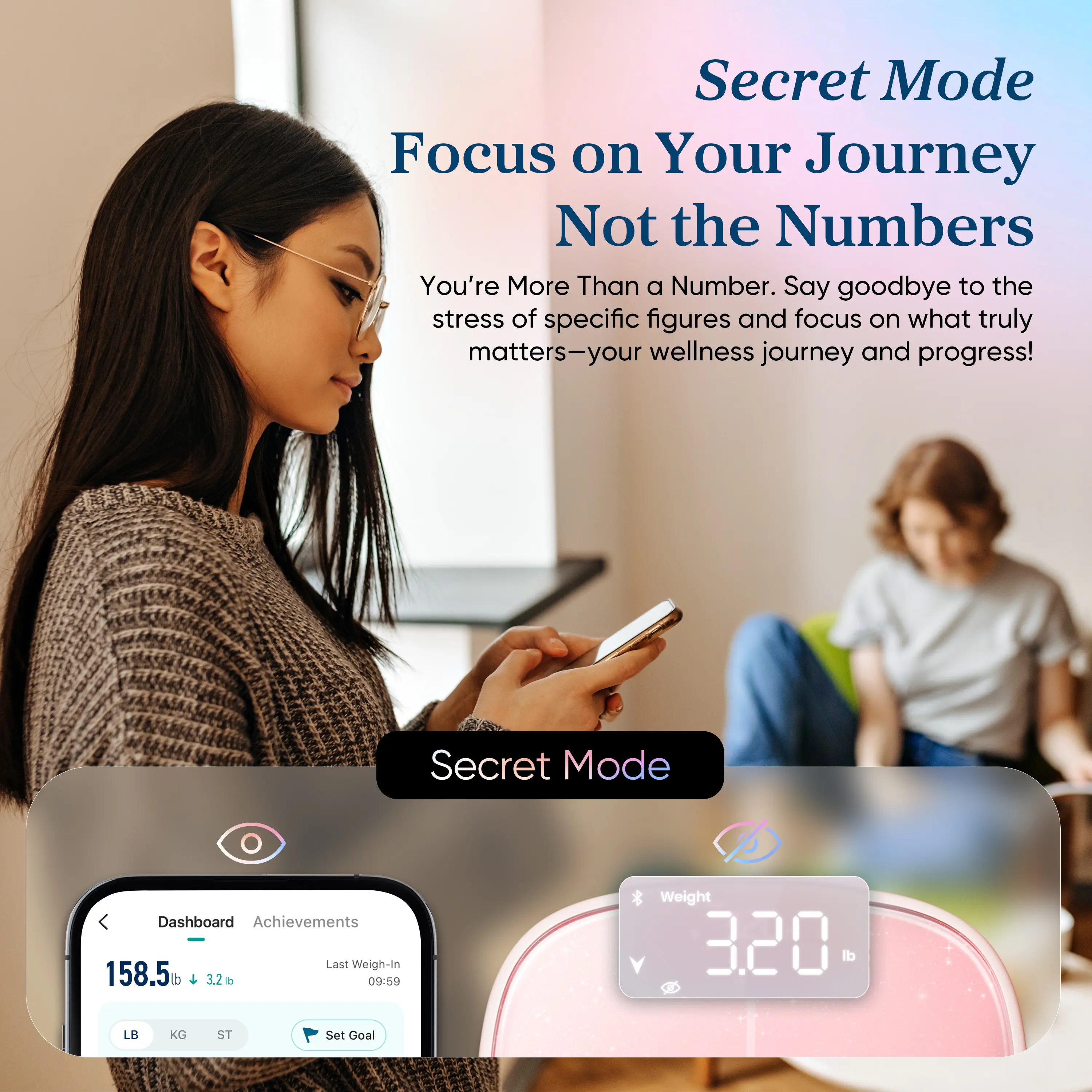 ·Care for Every Stage of Life: Secret Mode for tracking progress without the numbers, Lock Mode avoids tracking mistaken data from your furry friends, Zero-Current Mode for moms, and Baby Mode for your little one