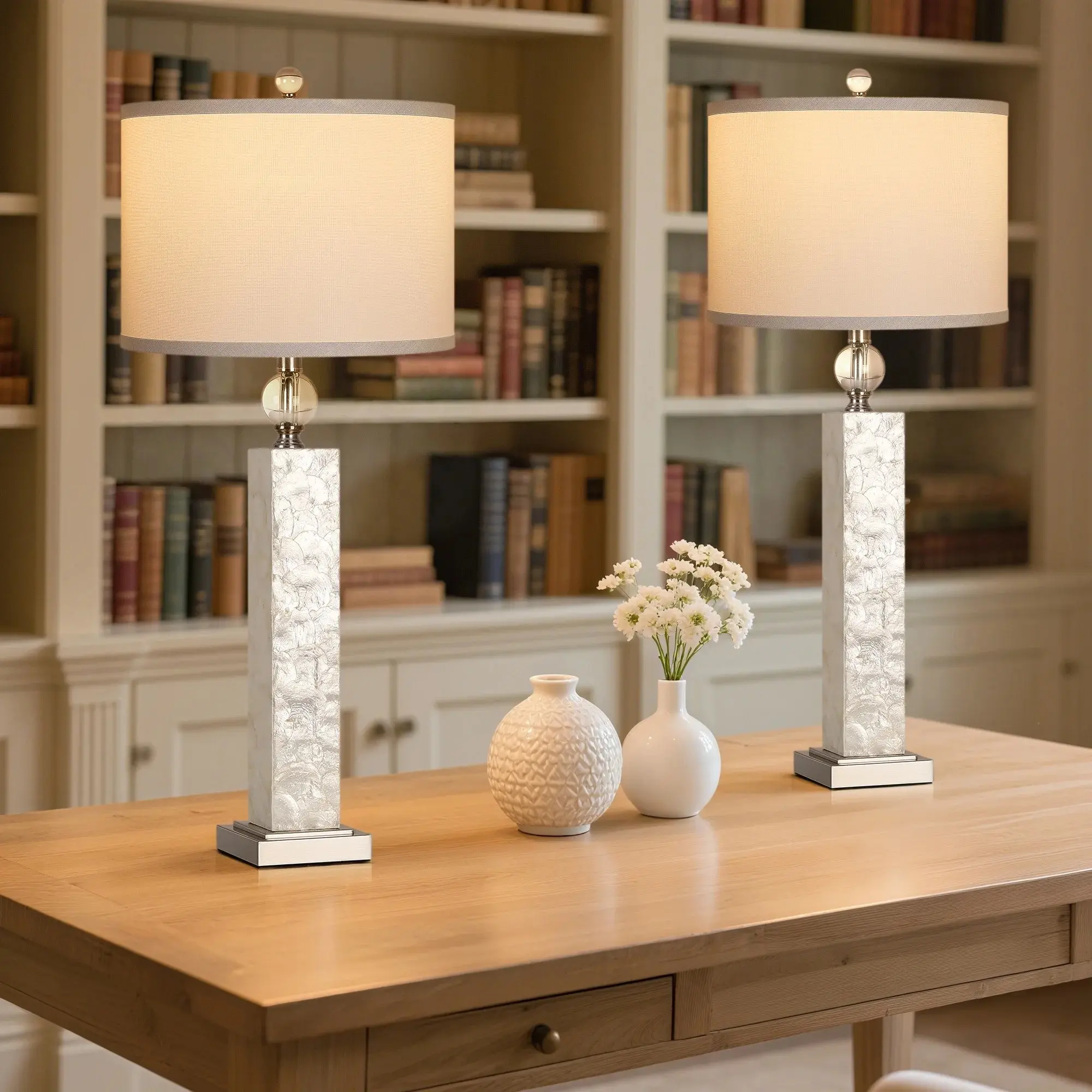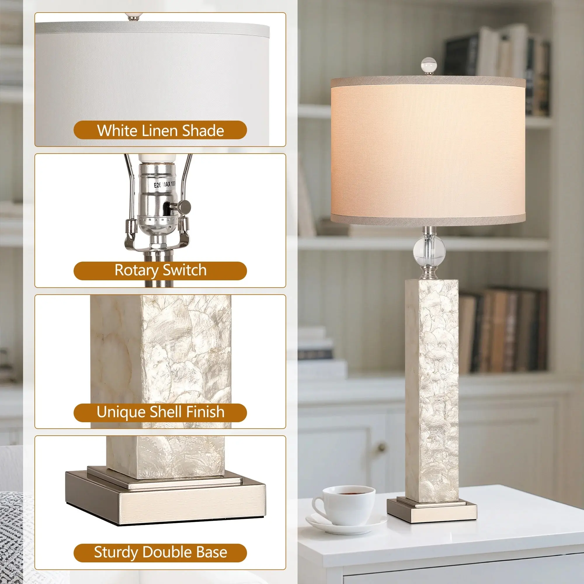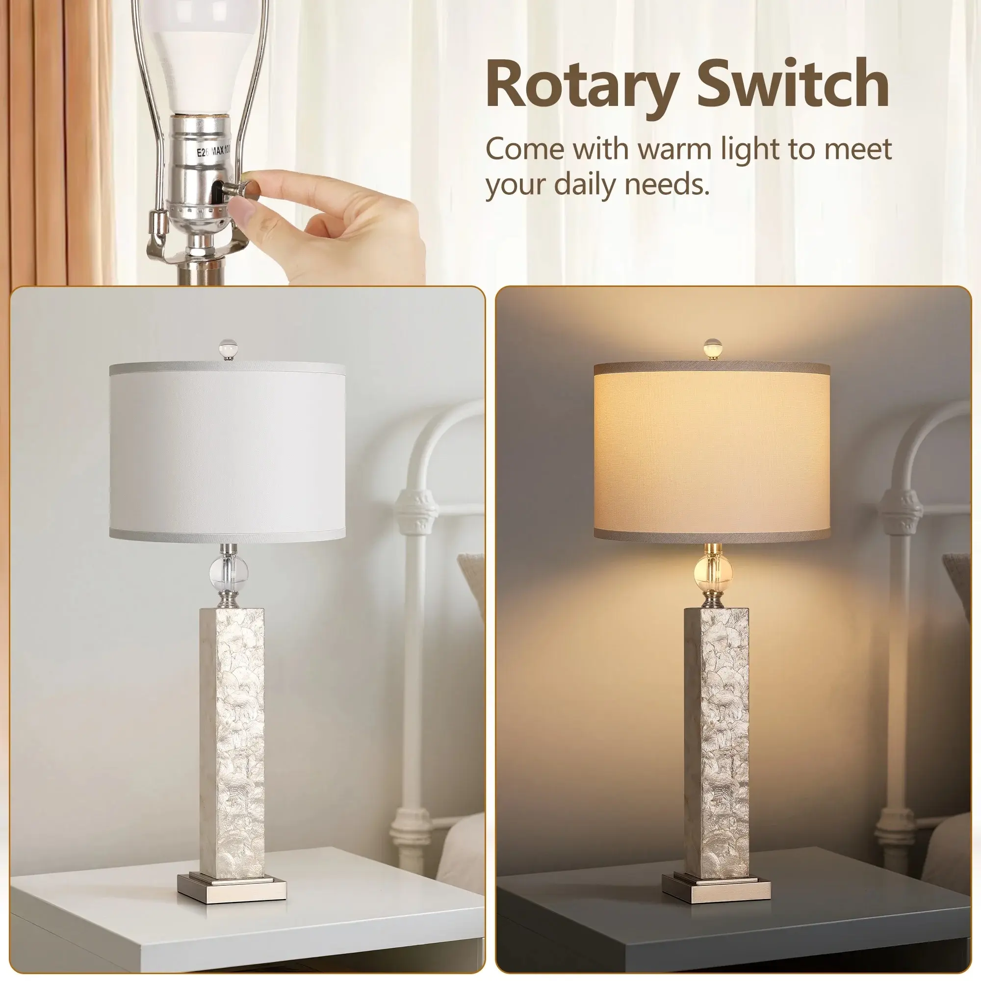 ·Linen Lampshades: The lamps feature linen lampshades, providing a soft and warm glow. Ideal for creating a cozy atmosphere in your living room or bedroom.