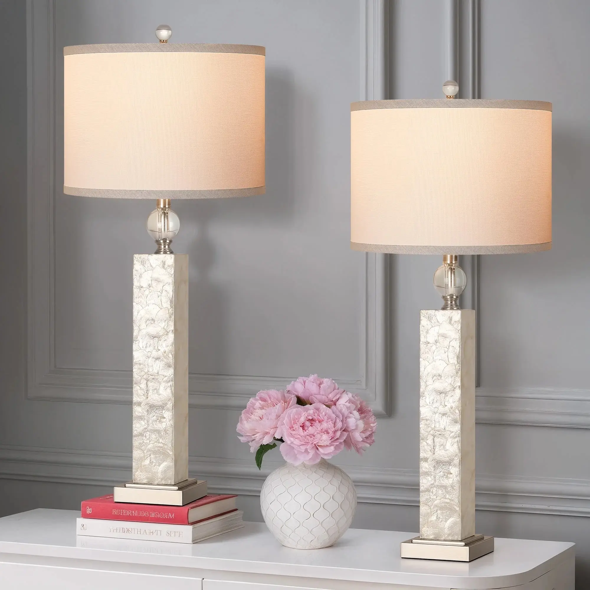 ·33'' Tall Table Lamp Set of 2: This set includes two table lamps, each standing at 33 inches tall. Perfect for adding a touch of elegance to any room.