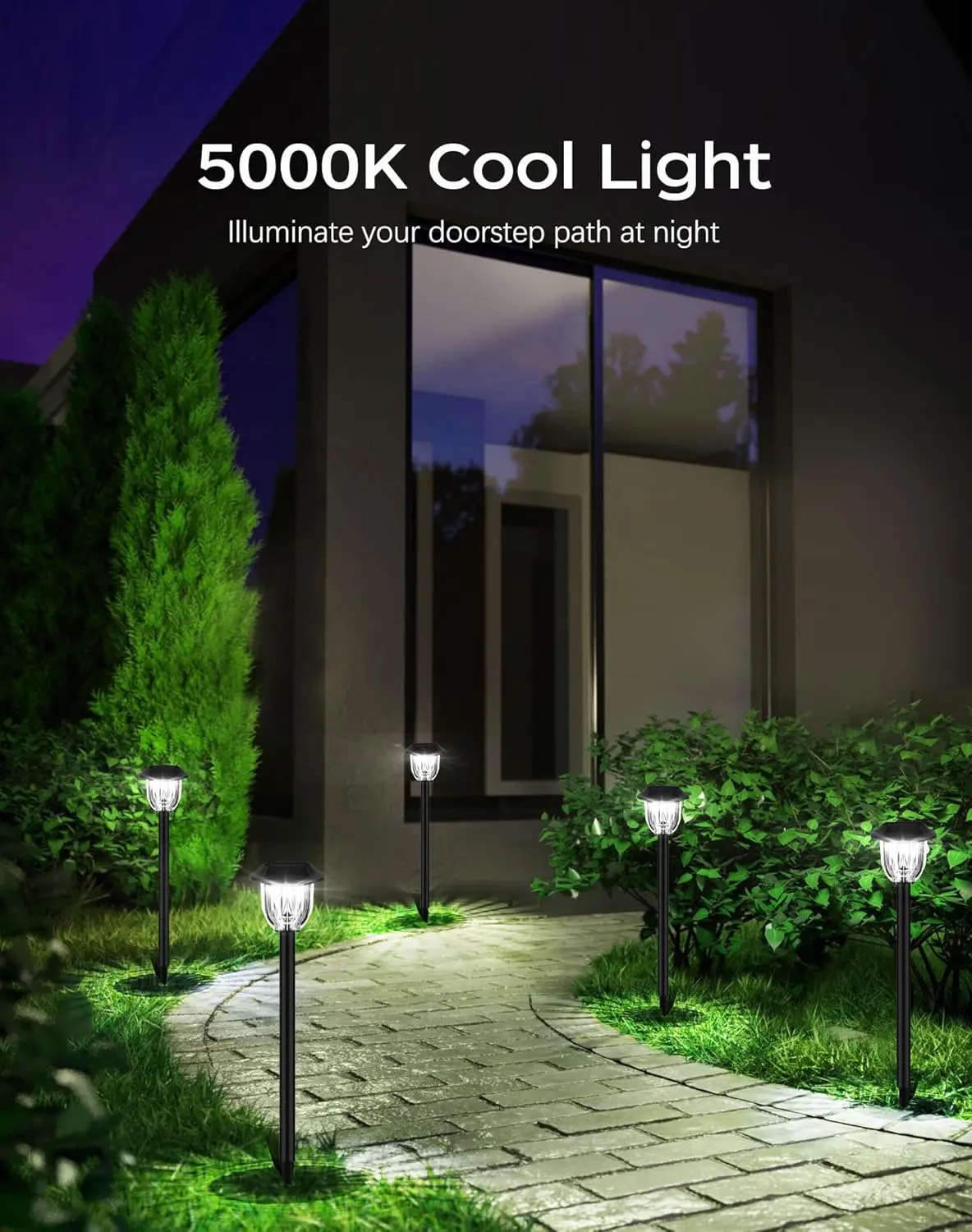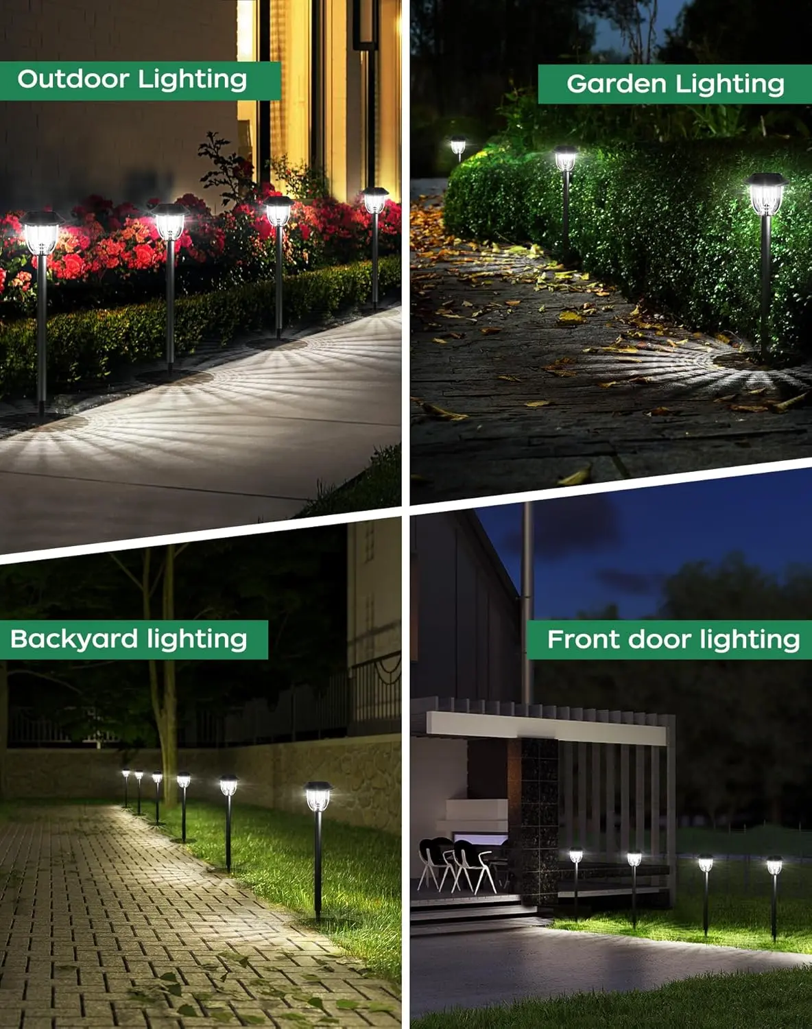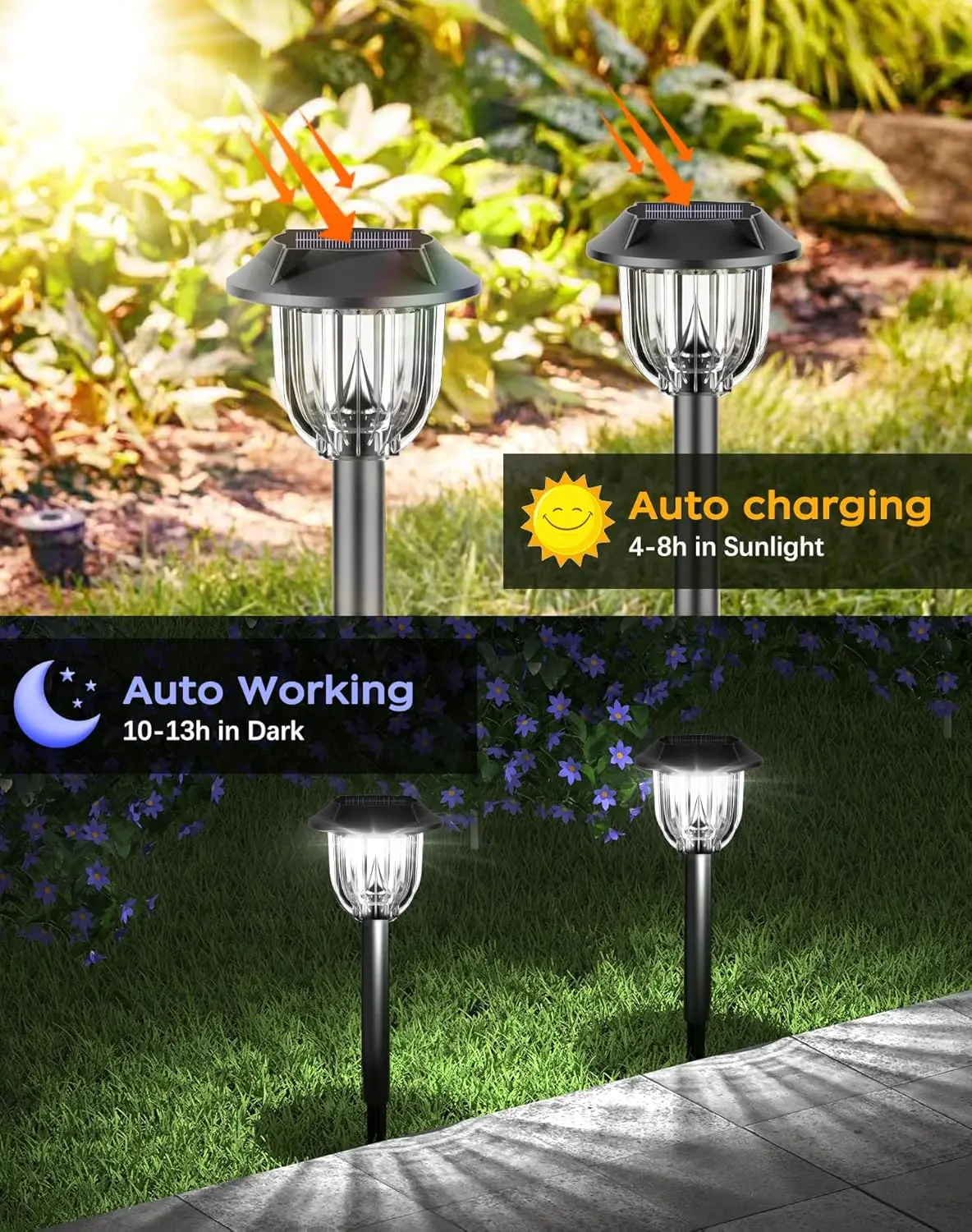 1. 【Upgraded Lighting Bead】Compared to other cheap SMD LED beads, our solar pathway lights adopt 8mm lens lamp beads, which not only have better transmittance that improves a brighter visual brightness but are also more sustainable than ordinary light.