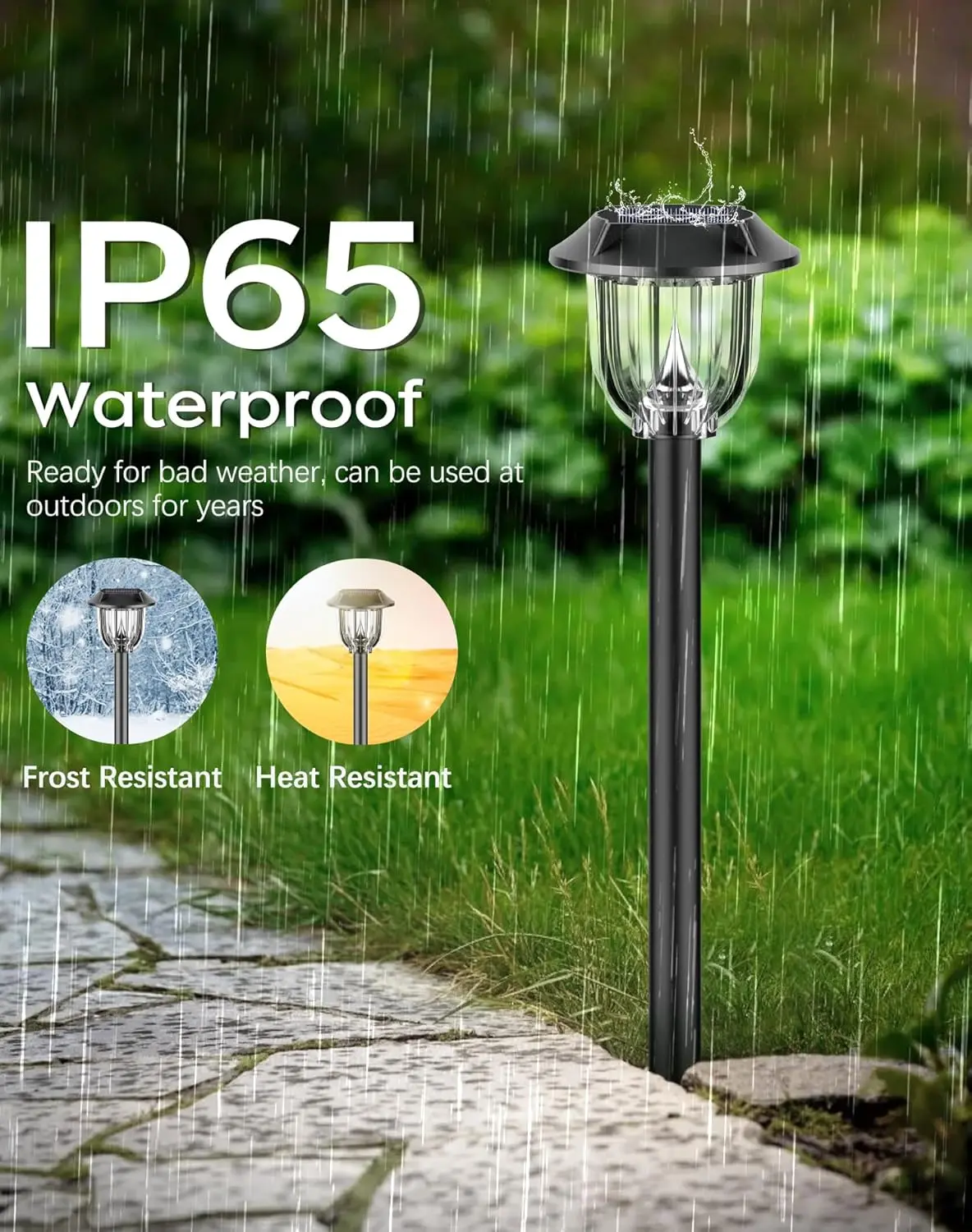 3. 【IP65 Waterproof & Sturdy 】To increase the long-lasting and stability of the solar garden lights, our lights use corrosion-resistant PC&PP materials and the matte pole diameter is thickened to 0.91'', while others are 0.5''.