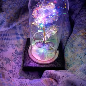 Ā·Light-Up rose in glass dome: The galaxy rose isnāt just a beautiful decoration for birthdays and weddings, but also a charming night light. Its unique colorful glow is powered by 3 AAA batteries (not included).