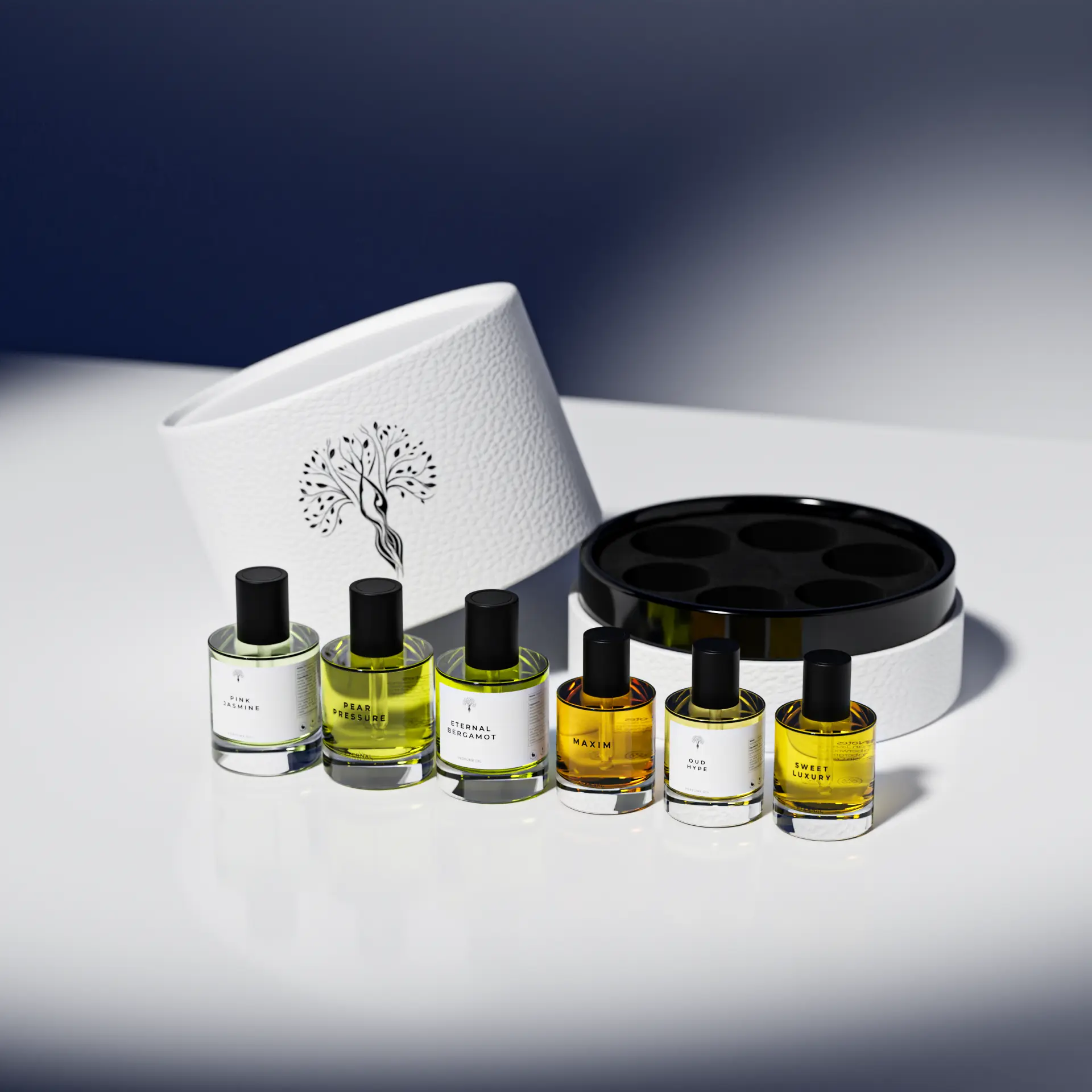 A collection of six long-lasting, alcohol-free fragrances for men and women. This premium set blends floral, fruity, woody, and musky notes, offering a versatile scent for every occasion.