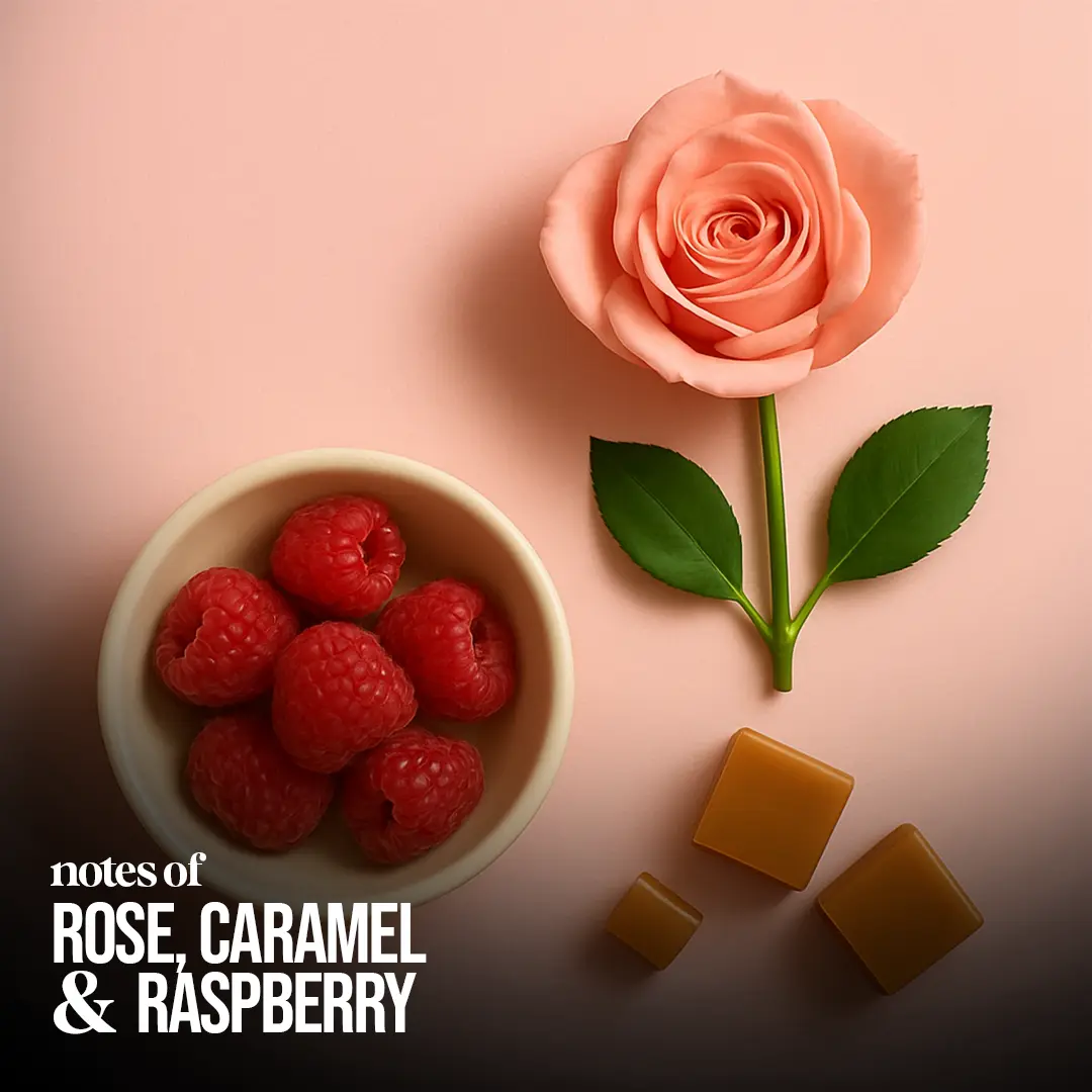 Pink Flirt is a sweet, sparkling, and romantic fragrance, blending the bubbly brightness of champagne and raspberry with the soft allure of rose and caramel. The warm base of musk and vanilla creates a charming and memorable scent, perfect for date nights and special occasions.