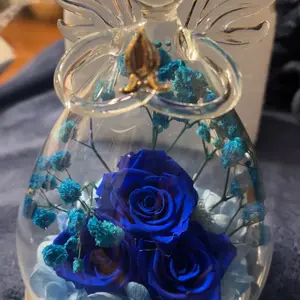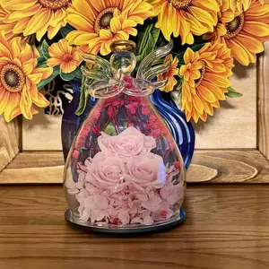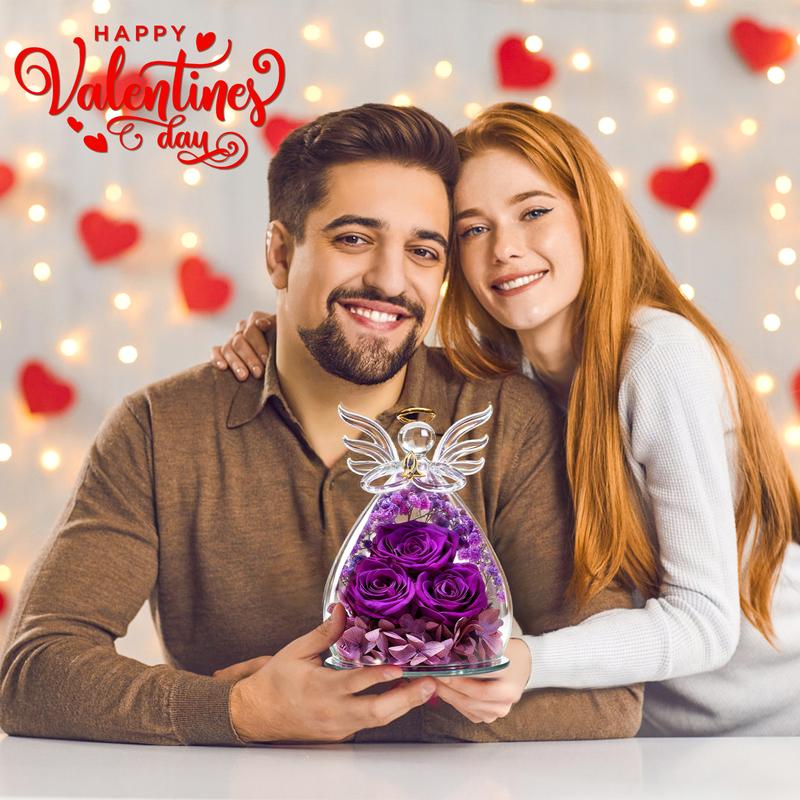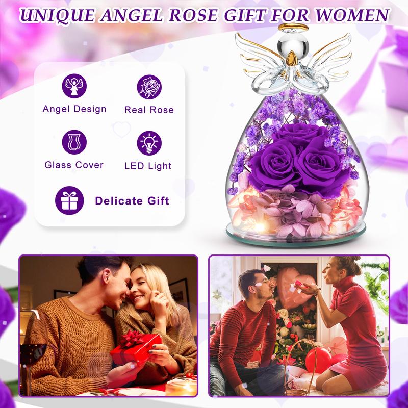 Eternal roses - Forever love: Each glass angel statue is handmade and the flowers are hand-dyed, gold outline painted wings. It make people feel special and meaningful on their birthday or any other important day. Warm angel decoration means the best wishes for women or special someone. Perfect birthday gifts for mom, anniversary gifts for wife, heartwarming gifts for women or someone special.