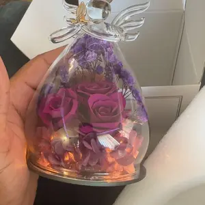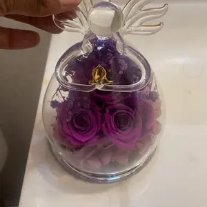 1 X Rose Flower in Glass Angel Figurines