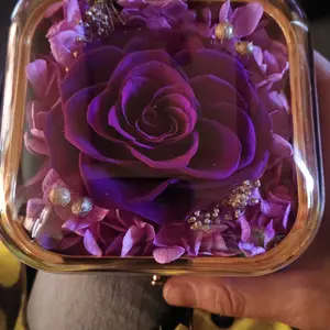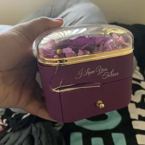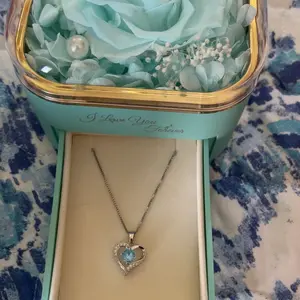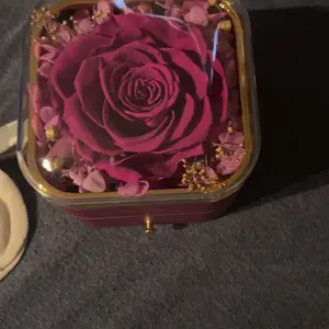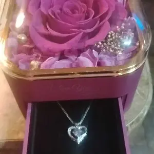 Está hermosa la flor y la cajita el collar también todo el conjunto está muy hermoso perfecto para regalarle a esa persona amada