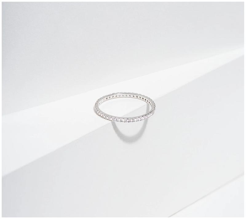 Stack up the style with this ultra-slim sterling silver stackable eternity ring. It's topped with sparkling cubic zirconia Diamonique simulated diamonds to dazzle brightly in any light.
