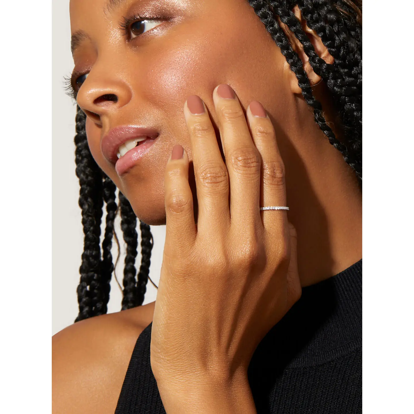 We believe an eternity ring should always be a staple piece in a jewelry collection. This sterling silver ring is dipped in a layer of rhodium, then set with cubic zirconia gemstones for a finishing touch of sparkle. Wear this eternity ring alone or pair it with some of our other silver statement rings to complete your look. Silver not really your color? Try our original Céline ring!