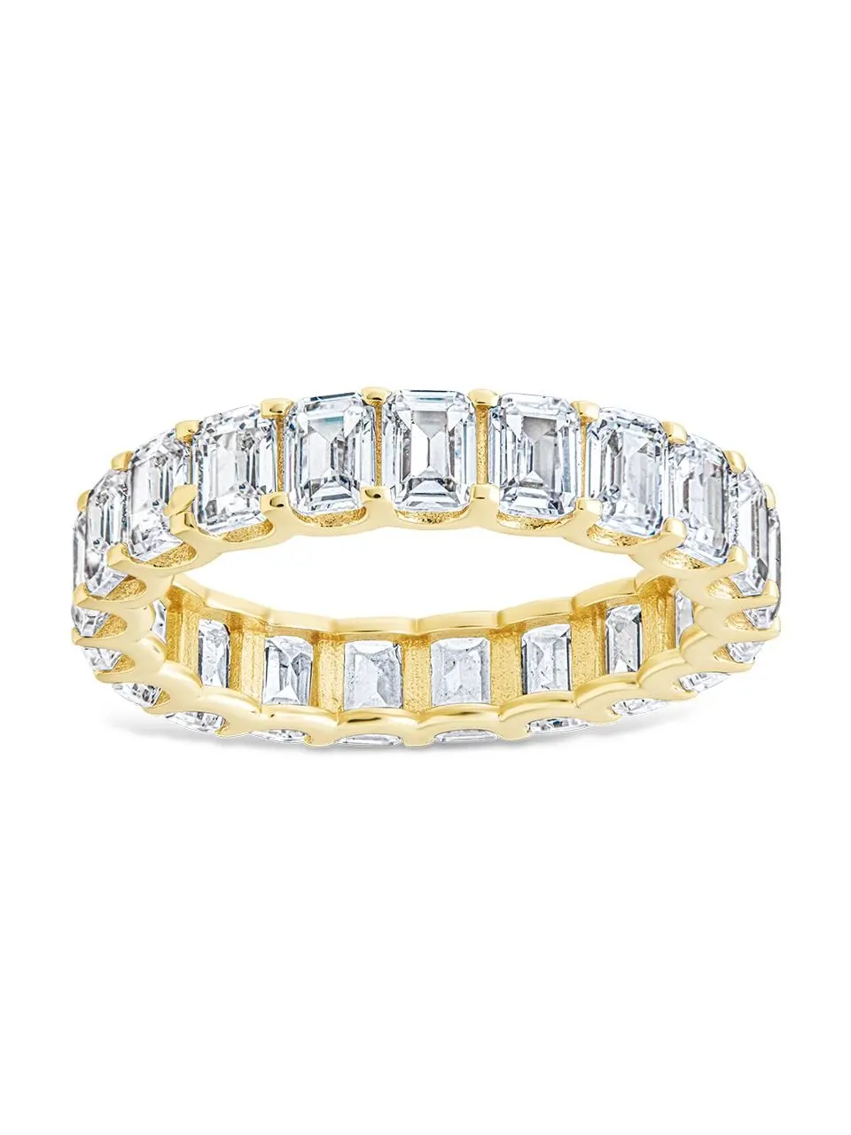 Introducing the Rio Baguette CZ Ring, a timeless piece of luxury. Crafted with stunning baguette CZ stones and designed as an eternity ring, this accessory radiates elegance and sophistication. A must-have for those who appreciate the finer things in life.