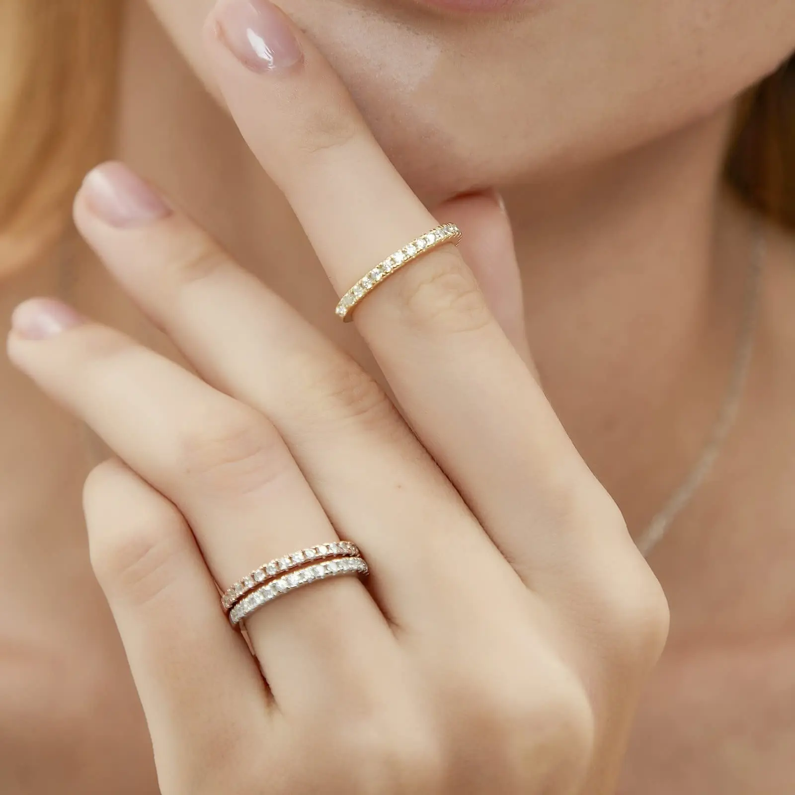 ·♥ Material ♥ Premium quality stackable rings crafted in hypoallergenic sterling silver, paved with AAAAA+ clear sparkling cubic zirconia stones,nickel free