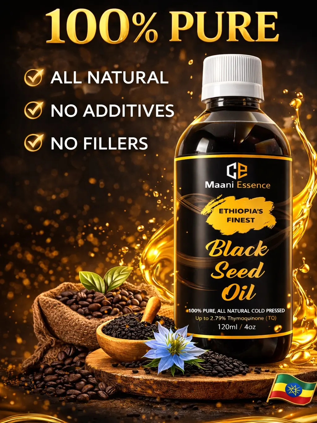 ·100% PURE COLD PRESSED BLACK SEED OIL: Experience the power of our Ethiopian Black Seed Oil, extracted from premium Nigella Sativa seeds using cold pressing for maximum potency and purity.