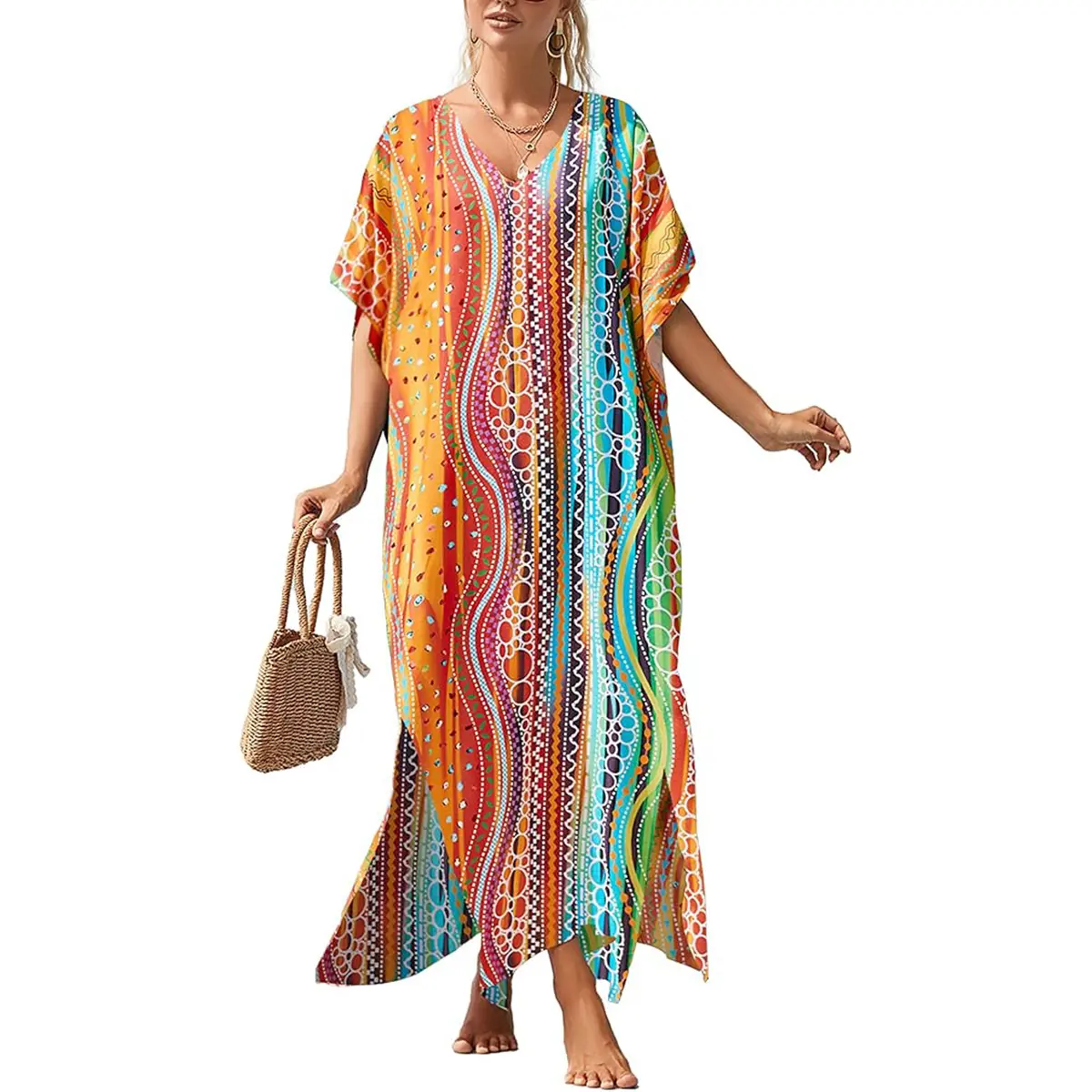 An absolutely fabulous kaftan! The style is free flowing and the fabric is lightweight. I can wear this to almost any occasion; it can be dressed up or down. I love it!