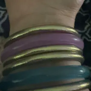 BuDhaGirl is all about wristscapes™ and exquisite bangle stacks. Now, with Etoile on your wrist, you will luxuriate in graceful elegance, the six bangles are simply perfect on their own. Etoile combines beautifully with our classic gold, is fantastic with silver, and incredible with Flint, Lila, Flame, and Marine.
