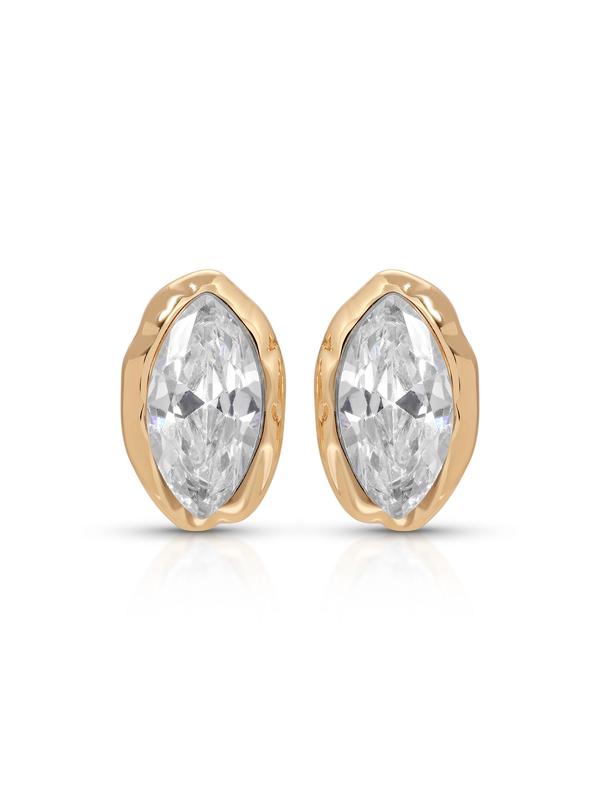 Ettika Crystal Luxe Mini Studs 18k Gold Plated Brass Cubic Zirconia Earrings 0.20" x 0.34" x 0.56" for Adults