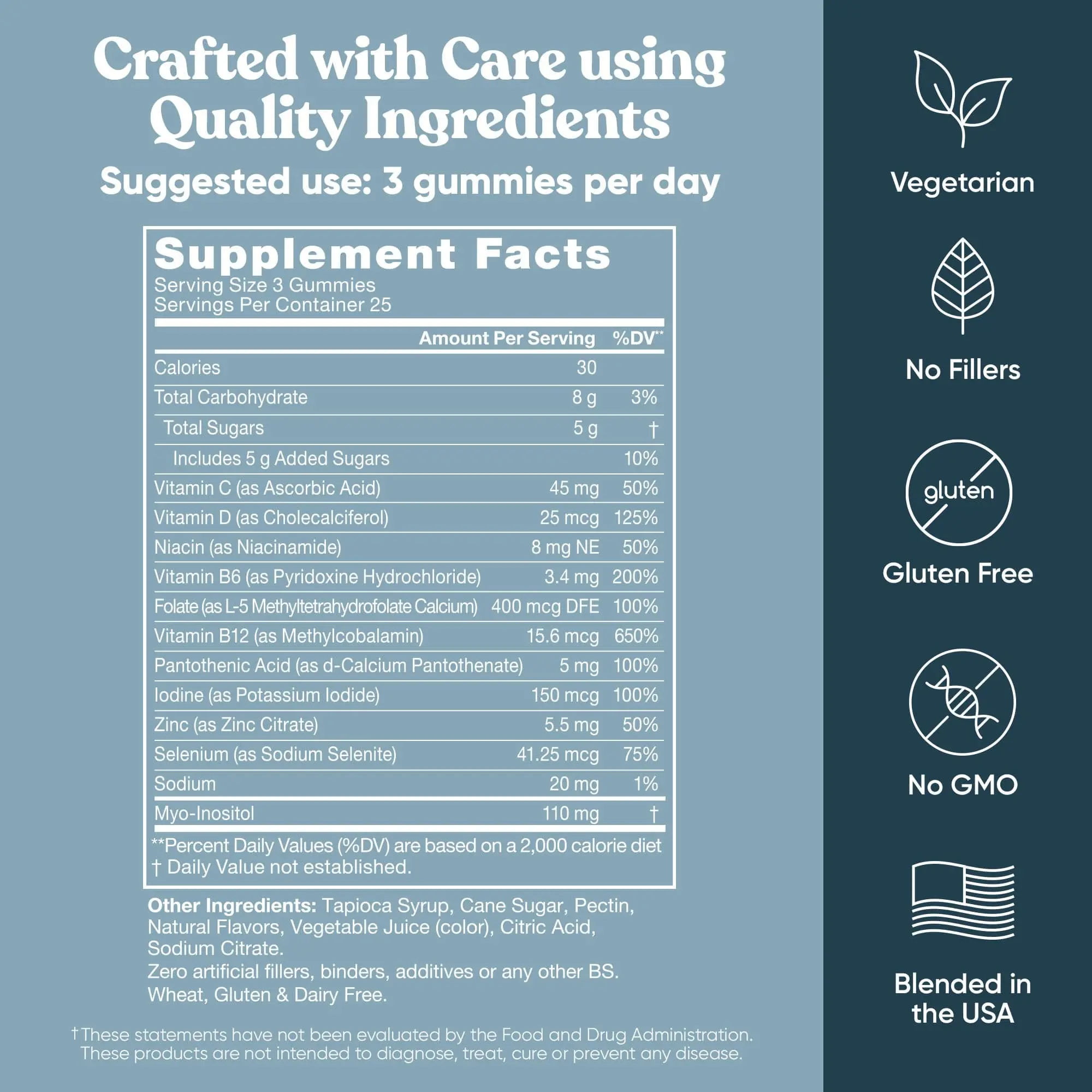 Contains essential nutrients: Myo-Inositol, Folate, Vitamins B6 & B12, Vitamin D, Zinc, and Iodine