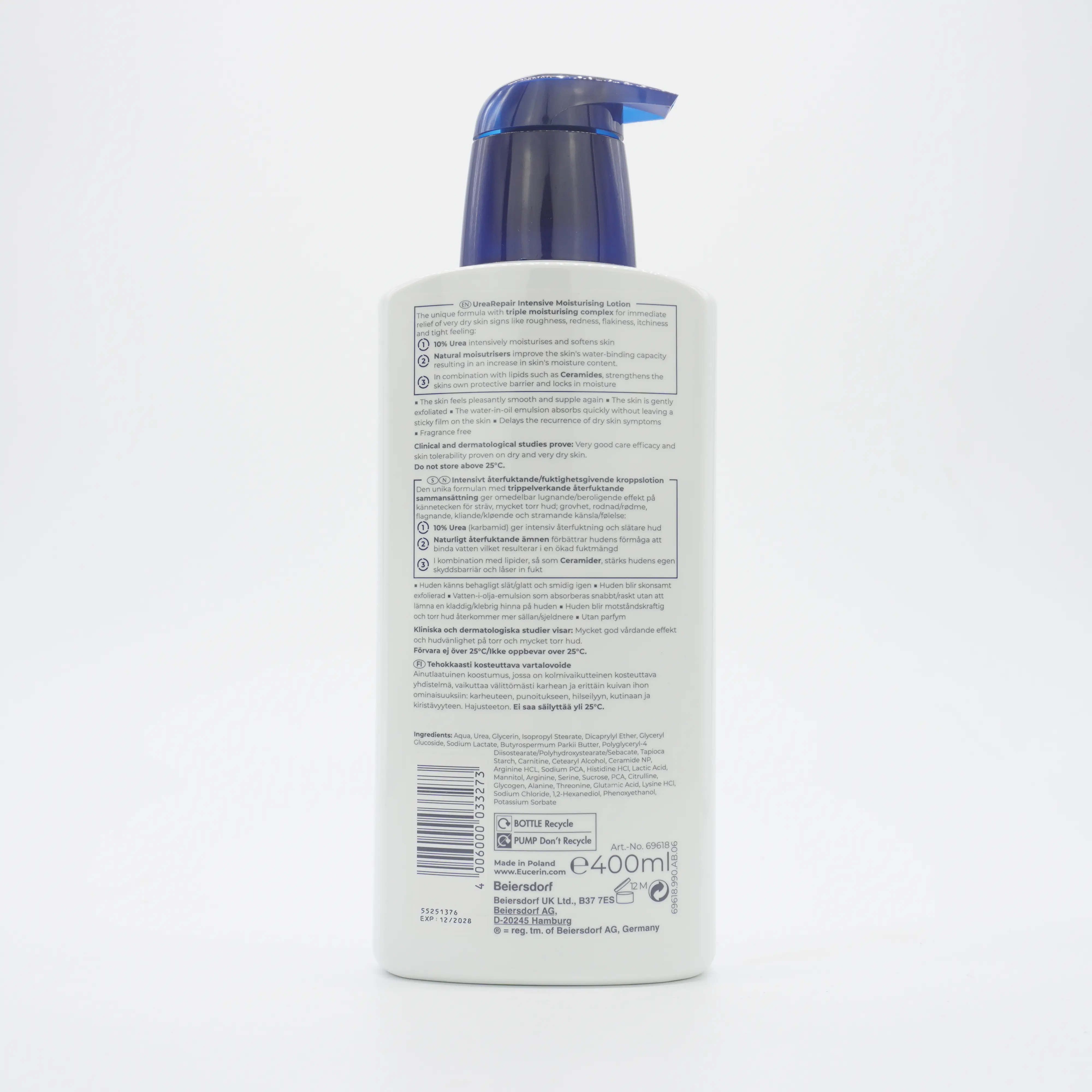Eucerin Urea Repair Plus 10% Urea Lotion is a highly effective moisturizing lotion designed specifically for dry to very dry skin. This dermatologist-recommended formula is enriched with urea, a natural moisturizing factor that helps to restore the skin's moisture balance while providing immediate and long-lasting hydration. With its non-greasy and fast-absorbing texture, this lotion leaves your skin feeling soft, smooth, and visibly healthier.
