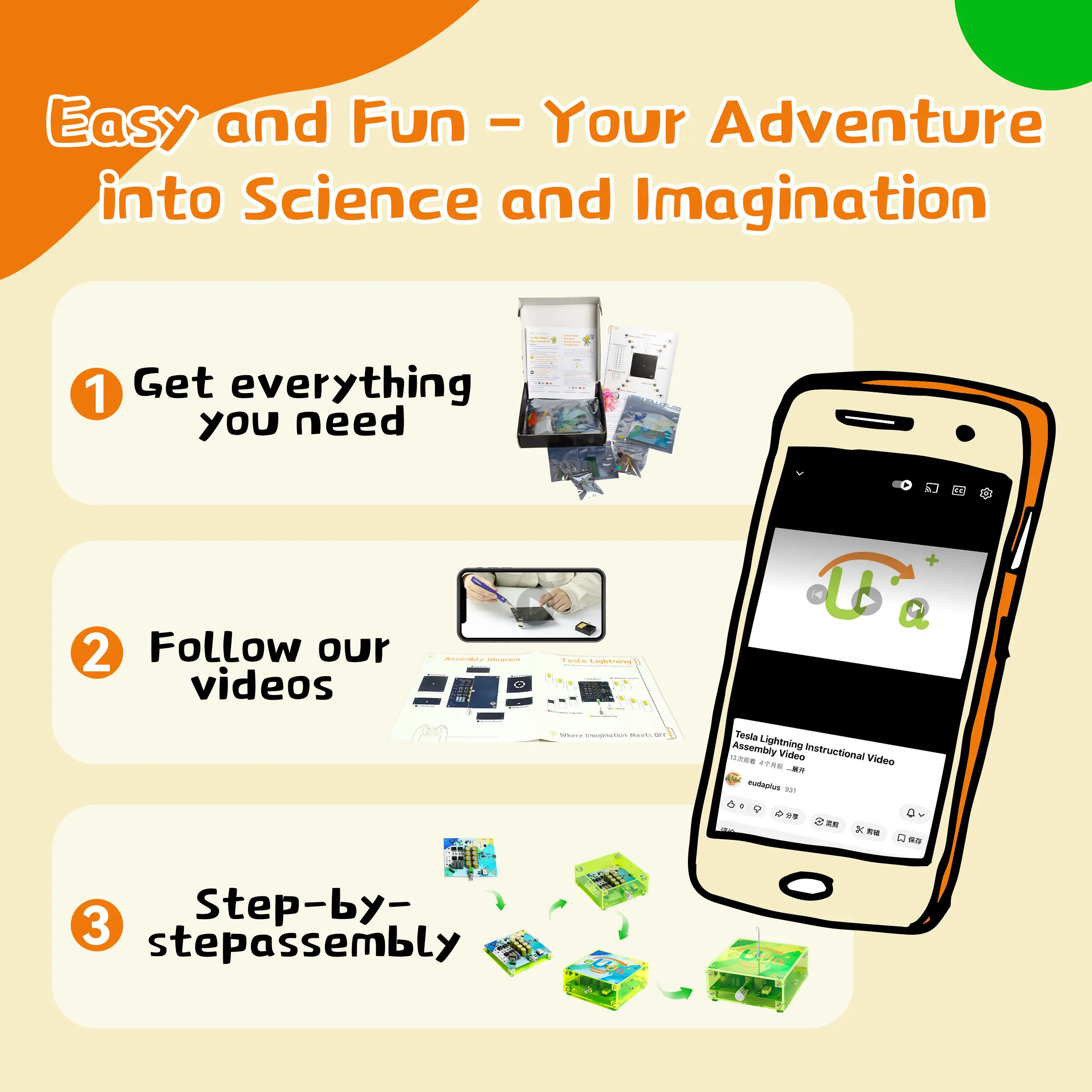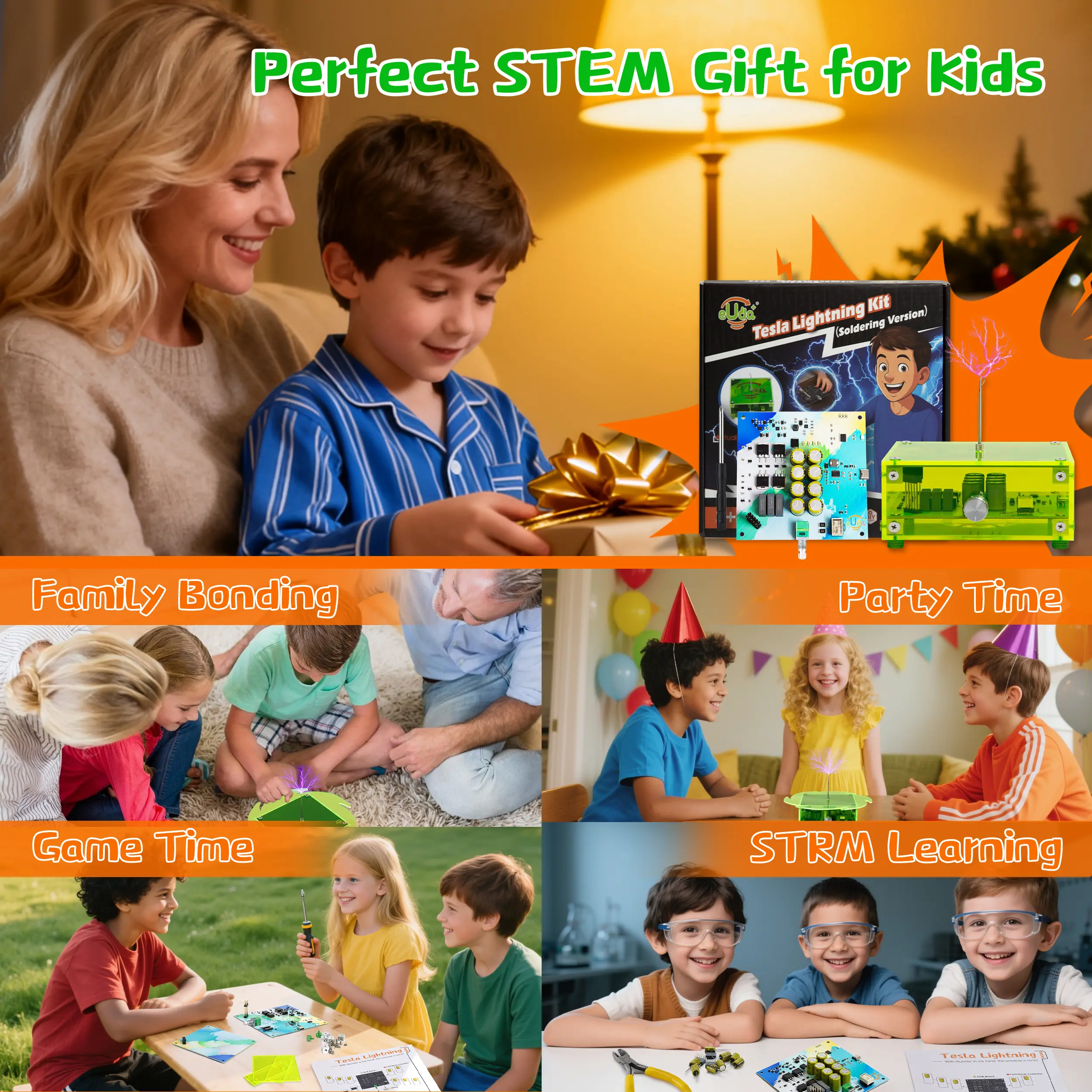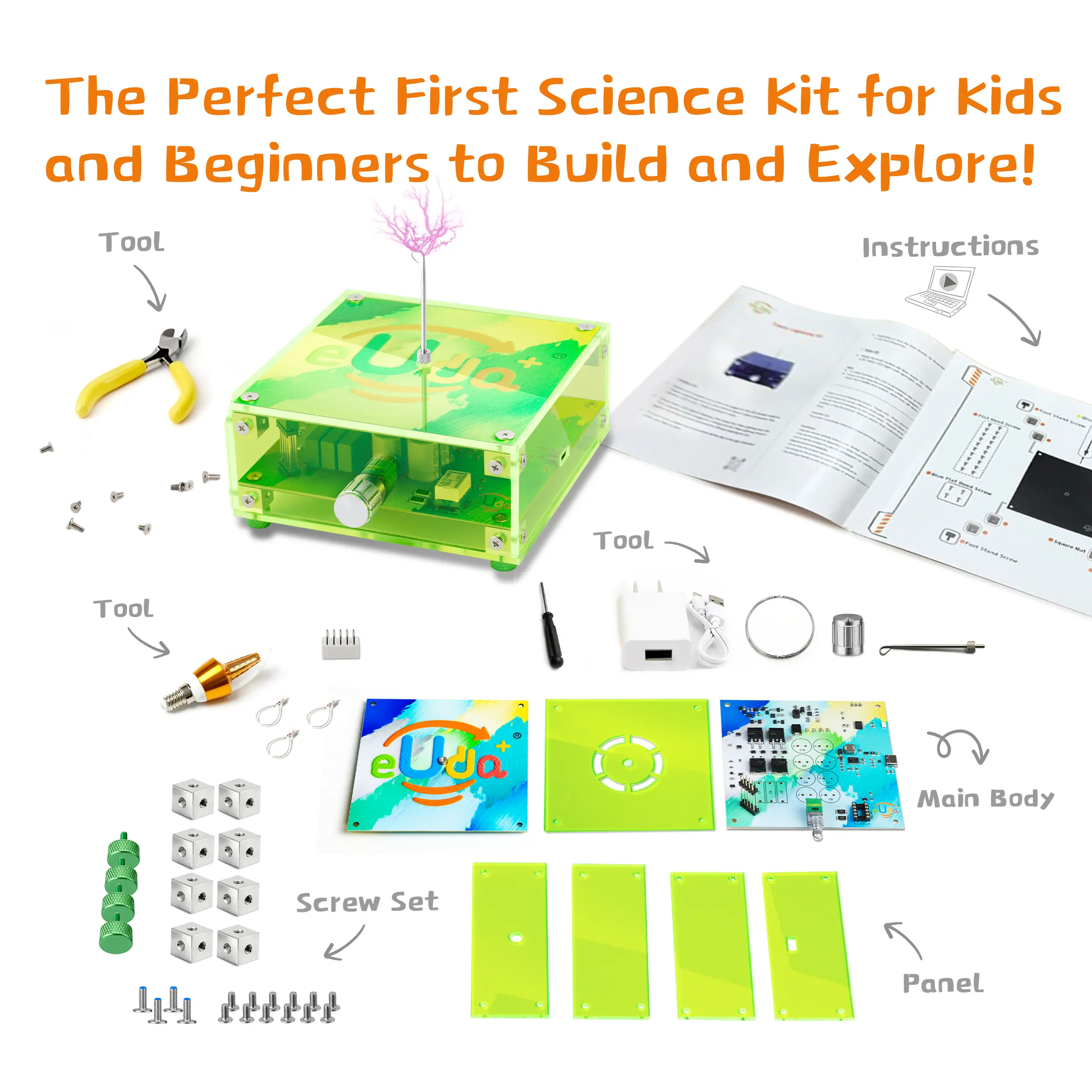 The eUda+ STEM Assembly Tesla Lightning Kit is an easy DIY electronic science kit. It's a unique STEM gift for kids. Perfect for fun hands-on learning and building. The kit includes all necessary components for assembly. 🛠️
