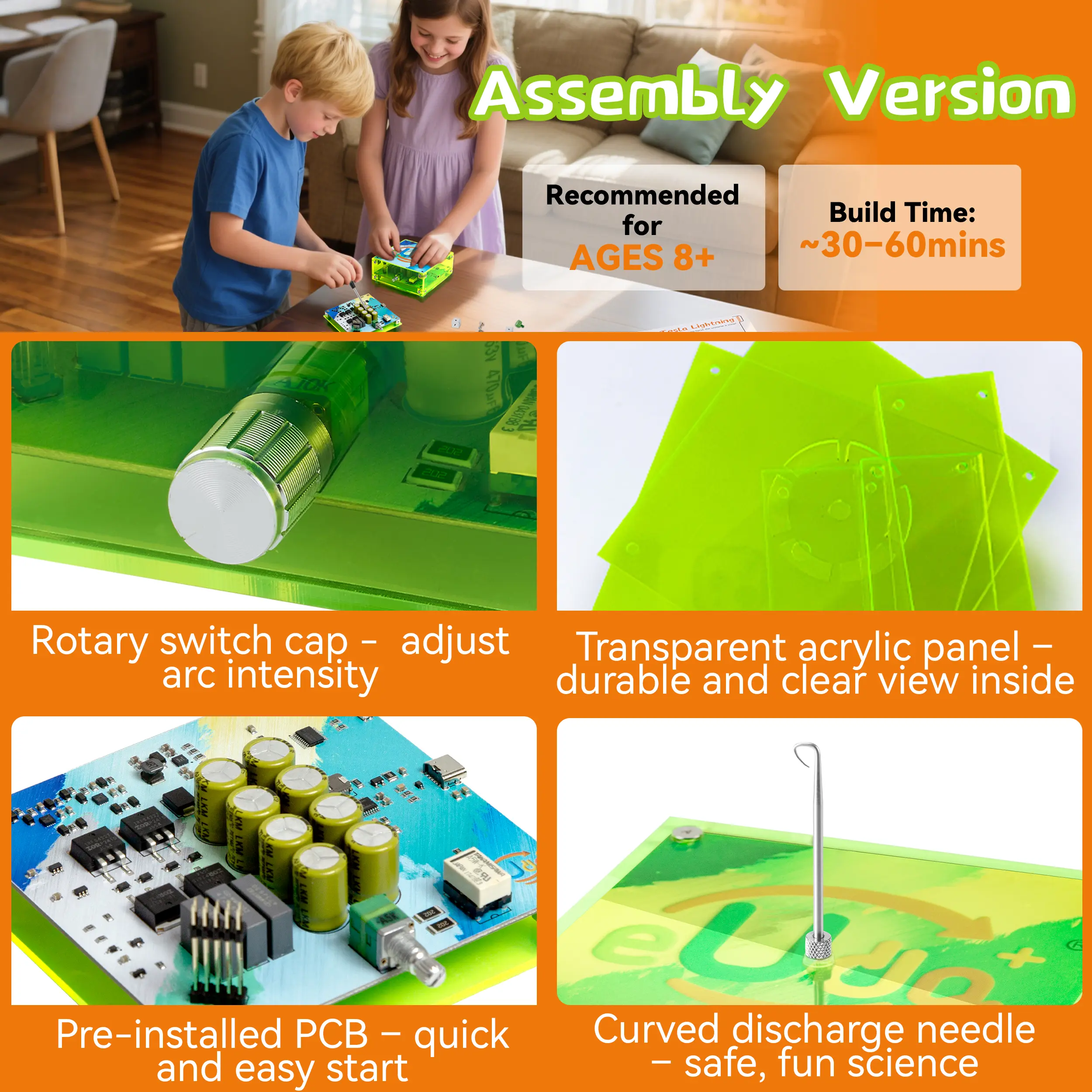 STEM Assembly Tesla Lightning Kit eUda+ – Easy DIY Electronic Science Kit – Unique STEM Gift for Kids – Fun Hands-On Learning & Building Toy
