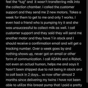 I have had nothing but issues with the pump I ordered from here. Both motors stopped working. Got another 2 sent, only 1 works again. Said they would send another one and it was in stock. A week goes by and I call again and they’re not in stock & to check back. Glad my sister loaned me her Momcozy!