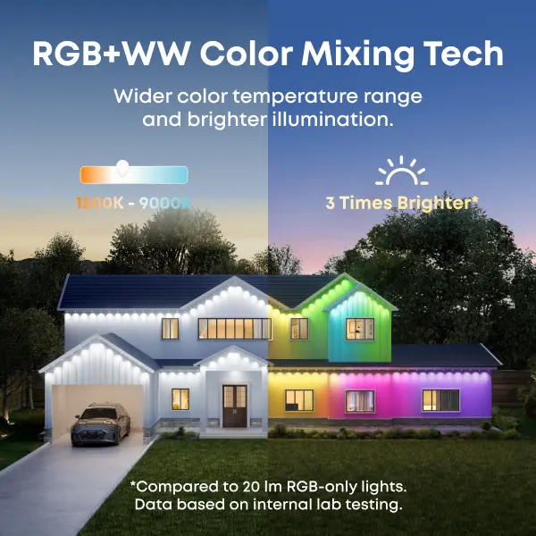 ·RGB+WW Color Mixing Tech: Offers a wide 1500K - 9000K color temperature range for brighter and more colorful lighting.