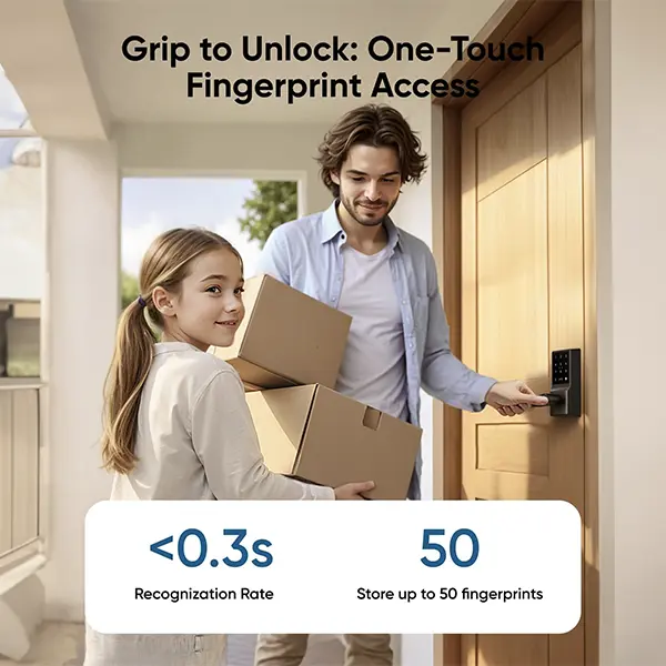 ·Seamless Fingerprint Recognition with Handle Grip: Unlock instantly with advanced biometric technology that learns and adapts to your usage. Effortless access for every family member, including parents and children.
