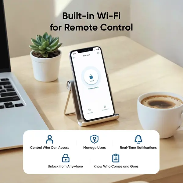·Integrated Wi-Fi for Remote Access: Control your doors from anywhere using the app. Features include access management, real-time notifications, and detailed event history.