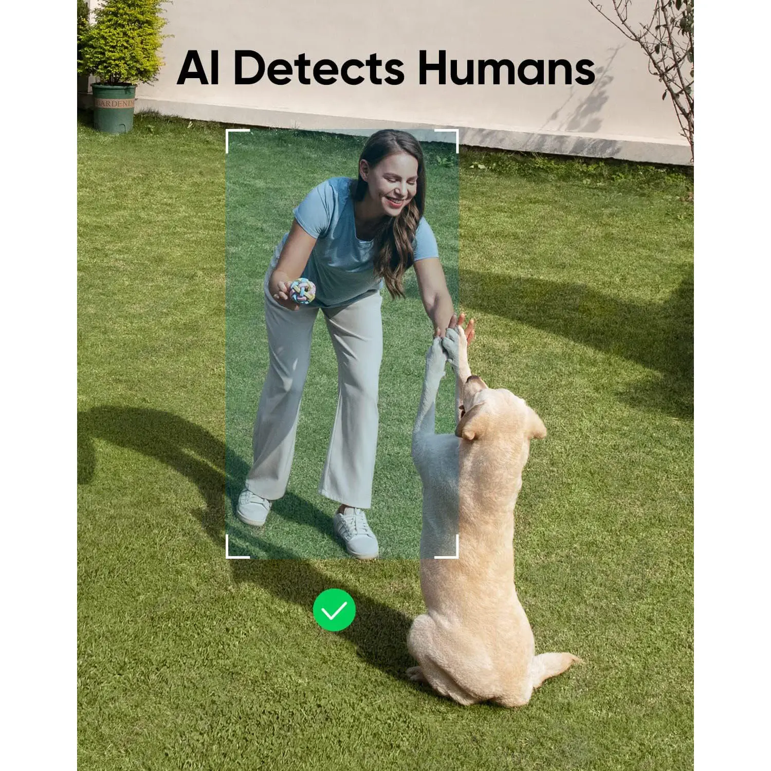 Human Detection: AI alerts you to anyone in your yard, whether family, a courier, or a stranger. Powerful on its own, enhanced by HomeBase 3 adding individual facial recognition.