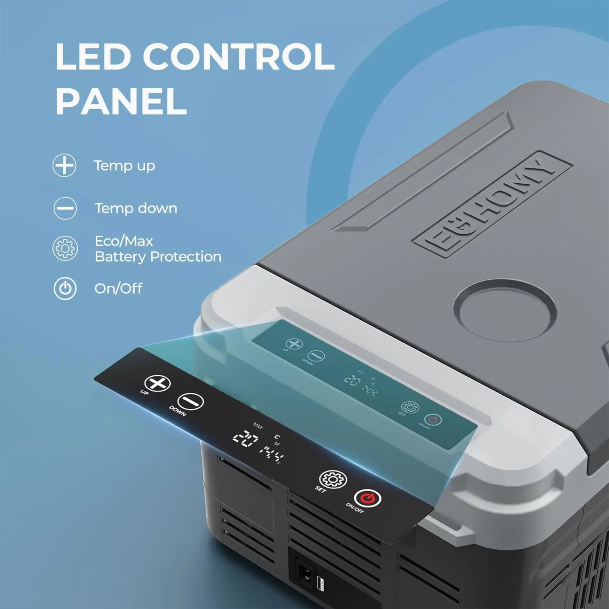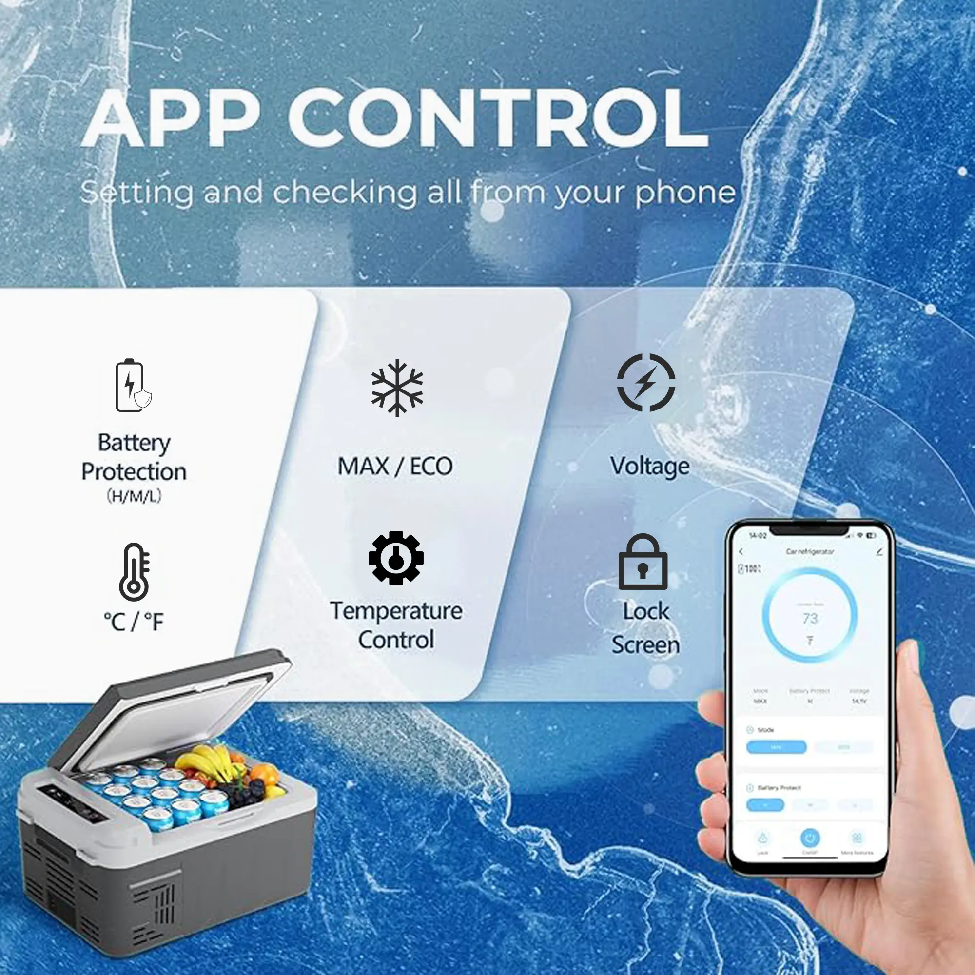 ·LCD Control Panel & Dual Mode:This car freezer features a simple LCD control panel for easy temperature and mode adjustments. This portable refrigerator is UL certified for energy efficiency, features an energy-saving ECO mode and a fast-cooling MAX mode, and consumes only 45W of energy on average.