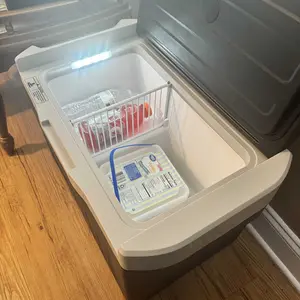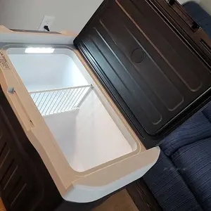 ·【Multi-partition Design & Insulation Shell】 The 12v refrigerator is equipped with detachable partition, and there has card slot, which can choose the partition position according to the different food stored, convenient to classify and take food, making the journey more pleasant and easy. The built-in LED light design makes it easy to reach things at night. The car fridge has a 45mm thick foam layer, which can provide the required insulation effect. At the same time, the shell is made of composite insulation material, which has a better insulation effect while wearing well. If you need to store more food, we recommend that you pre-cool the refrigerator before your trip.