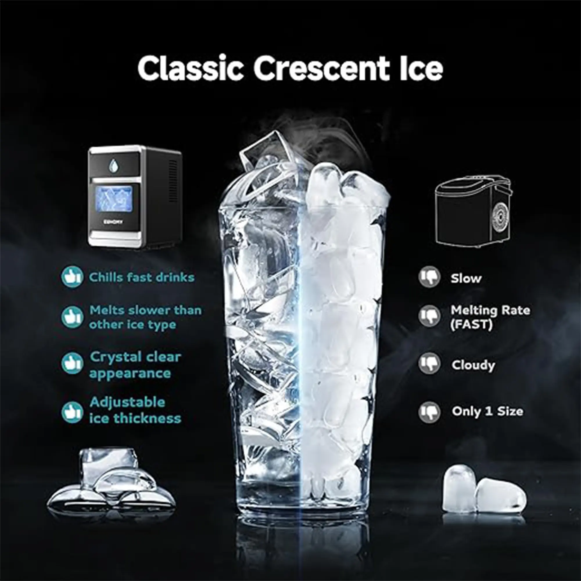Elevate Your Drinks with Crystal-Clear Crescent Ice