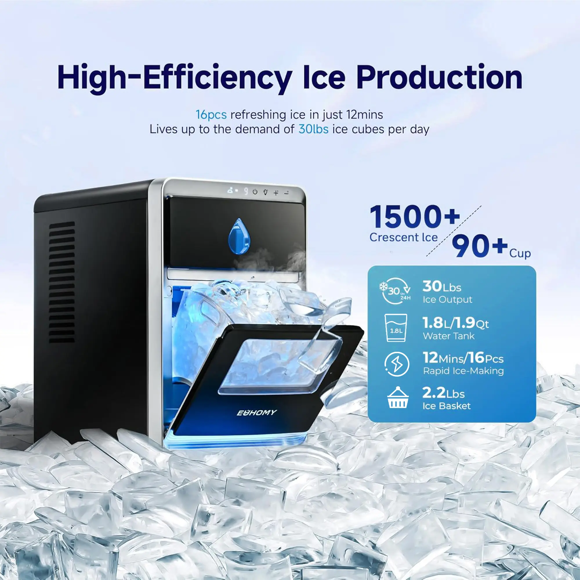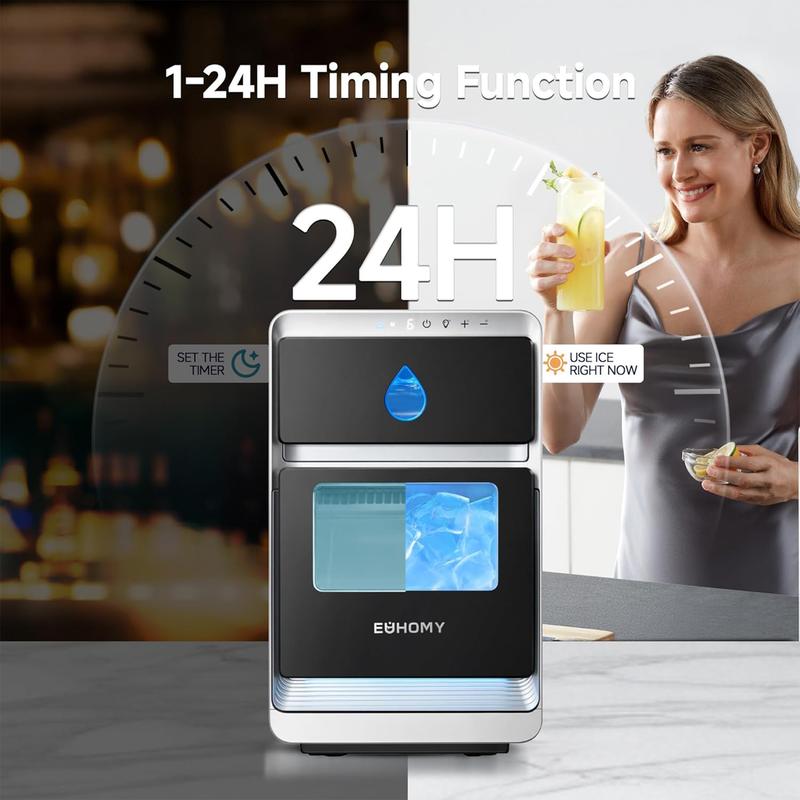 ·16 pieces in 12 minutes**: Produces about 120g (0.26 lbs) per cycle, doubling production speed for efficiency. Enjoy a steady supply of premium ice for entertaining or daily refreshment.
