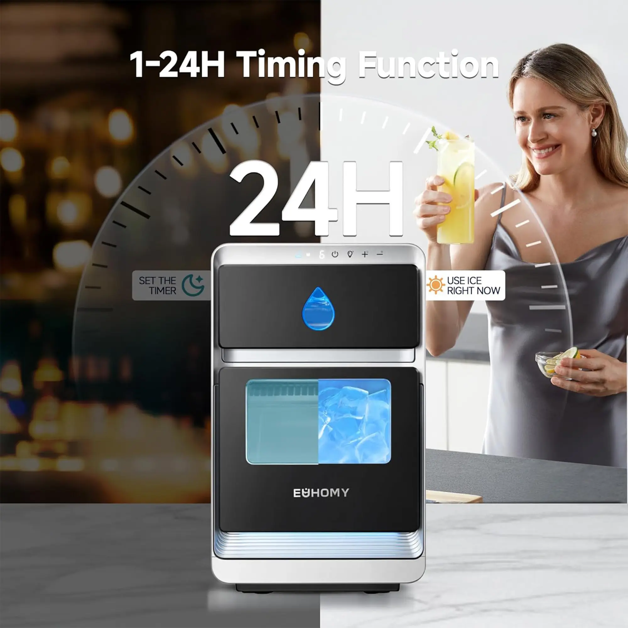 LunaArc's innovative flexible timer function allows you to schedule the ice maker based on your daily rhythm. Whether for morning coffee or evening parties, LunaArc ensures fresh, chilled ice when you need it most. No more waiting or worrying about running out of ice. LunaArc works seamlessly with your schedule.