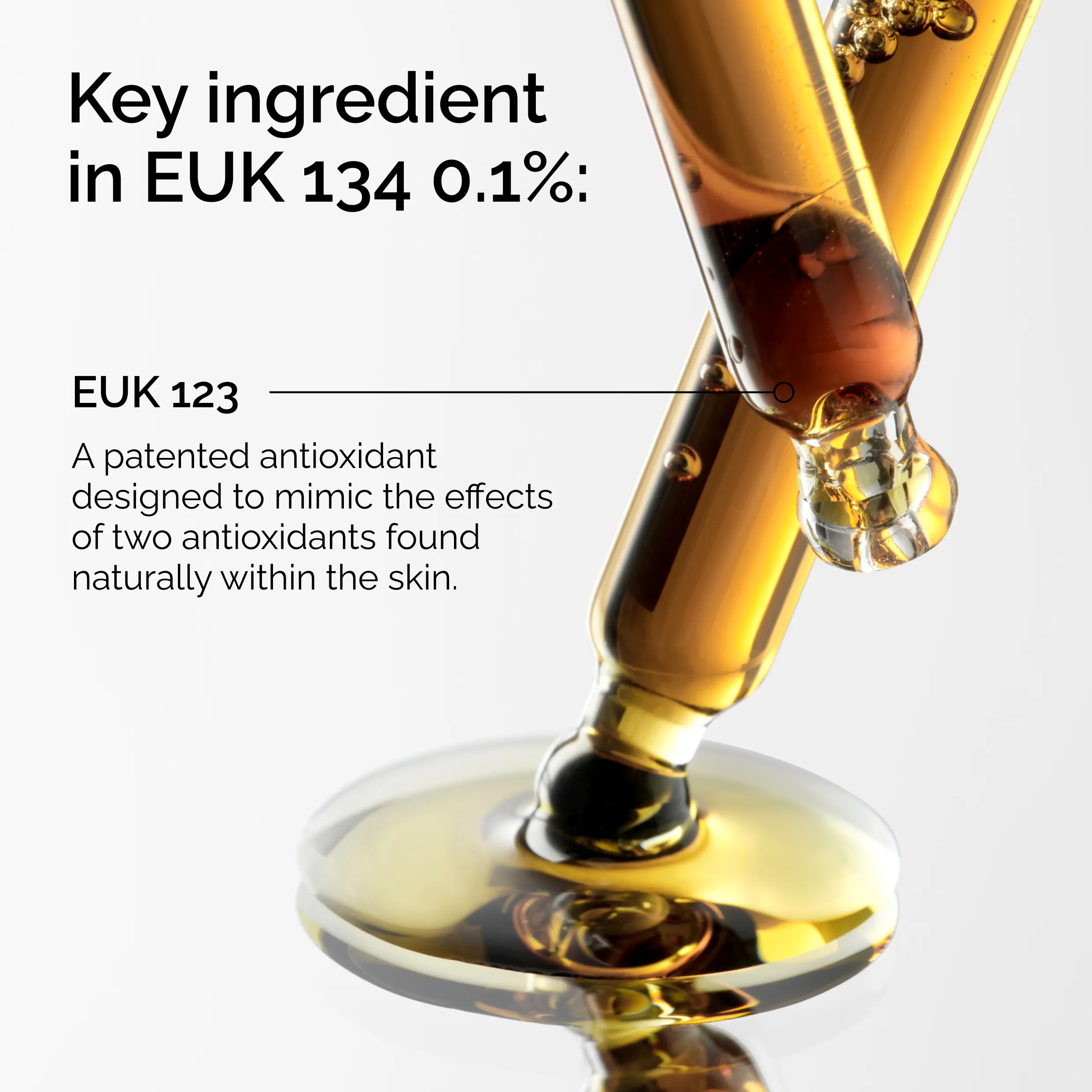 EUK 134 0.1%, is an oil-like serum designed to continuously support your skin with antioxidants and leave your skin looking brighter. By using a self-regenerating molecule that mimics the effects of two powerful antioxidants found naturally in your skin, this high-strength serum actively protects your skin from the visible effects of damage caused by environmental stressors. The low price of this formula does not reflect EUK-134's extremely high potency. EUK-134 is by far one of the strongest antioxidants available. While EUK-134 itself is very costly, the suggested concentration in any formula is below 0.05% and most formulas do not use this maximum suggestion. Our formula uses EUK-134 at an extremely high 0.1% concentration and we do not believe any product on the market today uses a higher concentration than this amount. EUK-134 is a trademark of Lucas Meyer Cosmetics Canada Inc. Neither DECIEM nor The Ordinary is affiliated with Lucas Meyer Cosmetics Canada Inc.