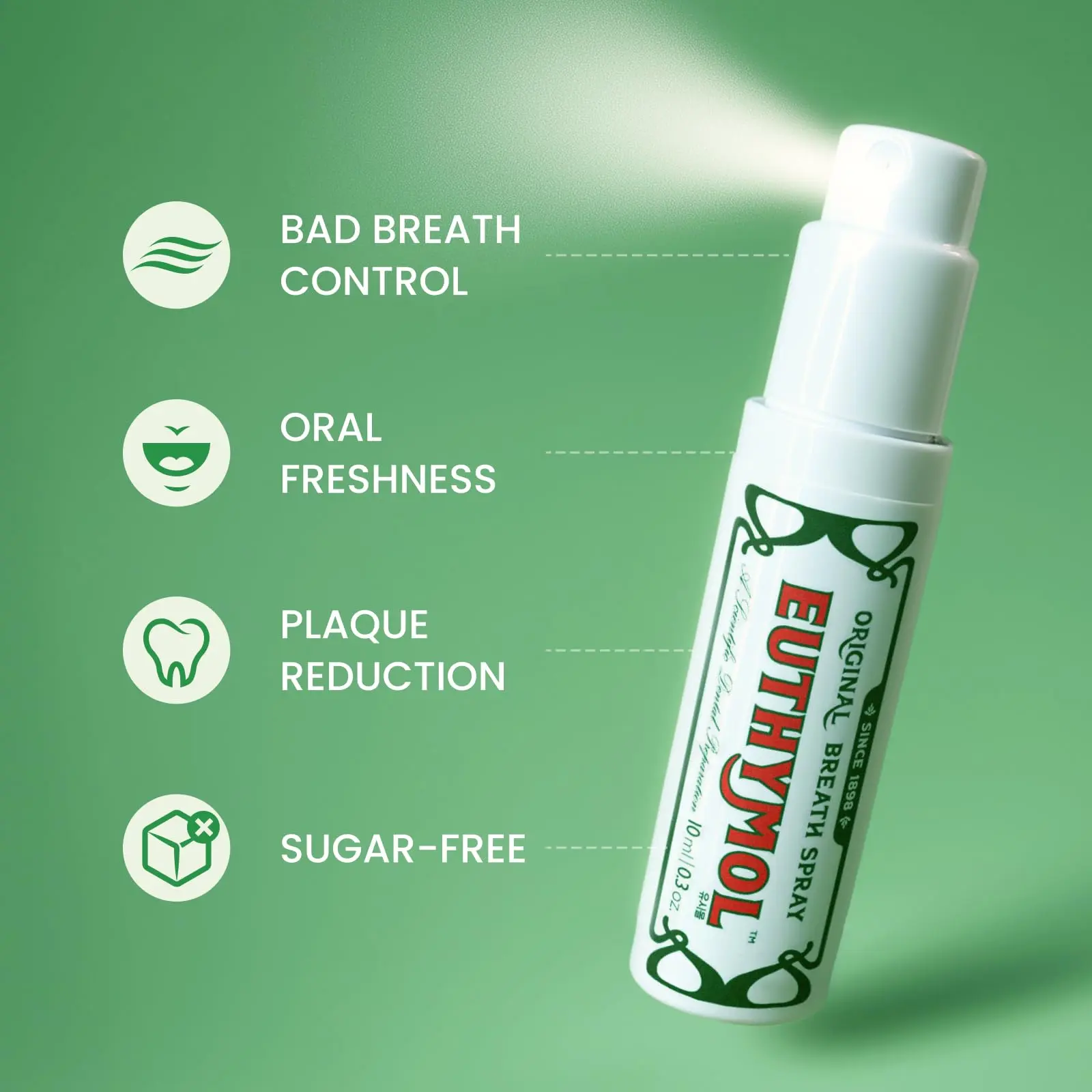 Euthymol original breath spray instantly refreshes your breath. It's perfect for those who value freshness on the go. Trust Euthymol to support your oral health with its reliable formula since 1898.