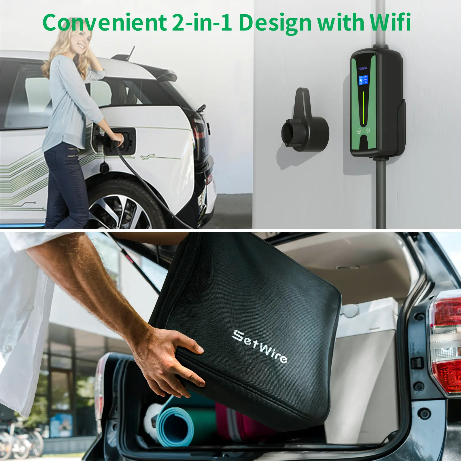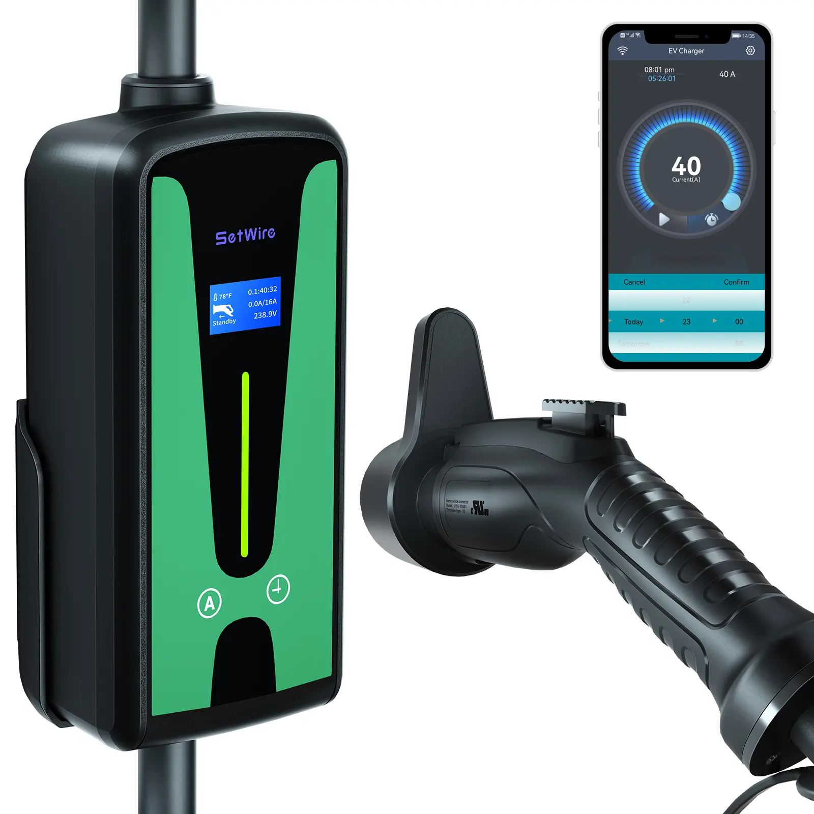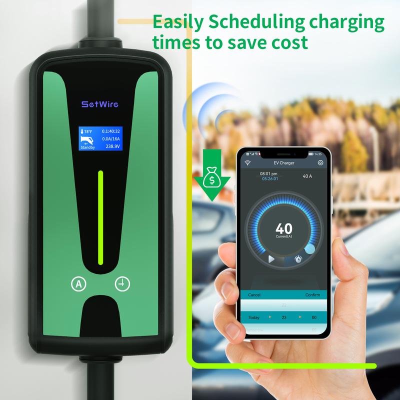【Convenient 2-in-1 Design with WIFI Hotspot】The SetWire EV charger level 2 meets all your charging needs and can be wall mounted indoors or outdoors. It is also portable and can be taken with you while traveling, saving you the cost of buying a travel charger. Easily control this charger through the app by scheduling charging times to save cost and change the current.(not WIFI to internet)Please change Bluetooth to WIFI model on home page first.