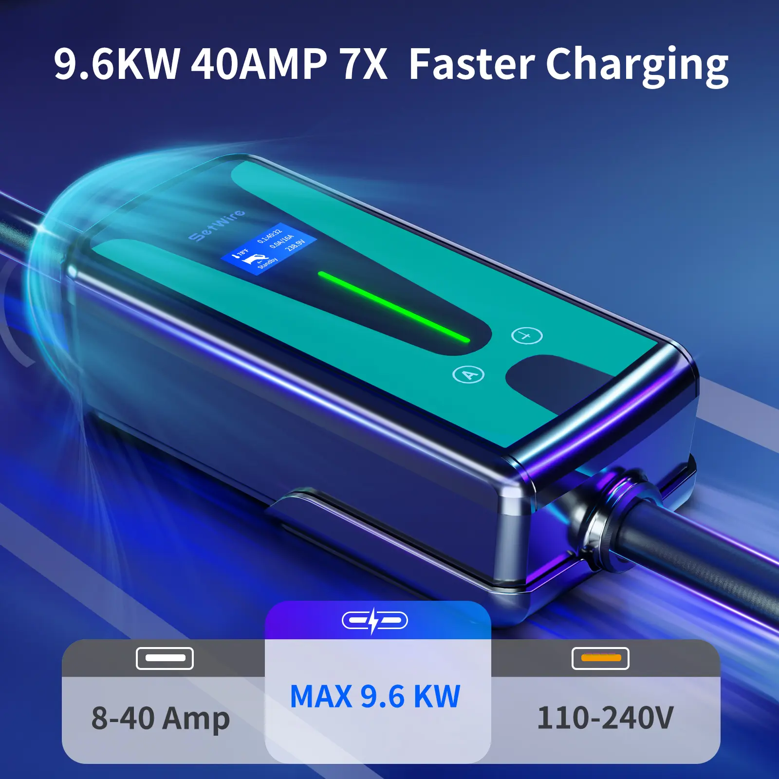【Fast Charging & Easy Installation】Quickly charge your vehicle with SetWire’s 40 Amp EV charger, designed to provide up to 9.6 kW of power, 7 times faster than a Level 1 charger. Effortlessly plug into your 14-50 or current socket or have installed by an electrician and enjoy immediate use.