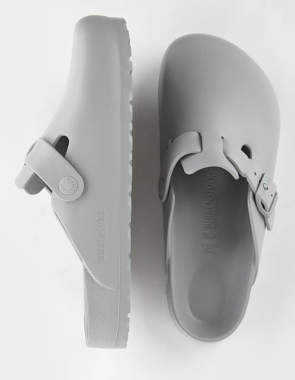Birkenstock Boston Essentials EVA Clogs. The Birkenstock Boston is a veritable classic that can easily be worn all year round. The Boston has a legendary status thanks to its sophisticated, individual design. Shown in EVA, a synthetic waterproof and lightweight material. Super lightweight - great for after the gym or the beach. Anatomically shaped Birkenstock footbed made from EVA. Upper/lining/sole: a single piece of EVA. Waterproof, washable, ultra lightweight. Imported.
