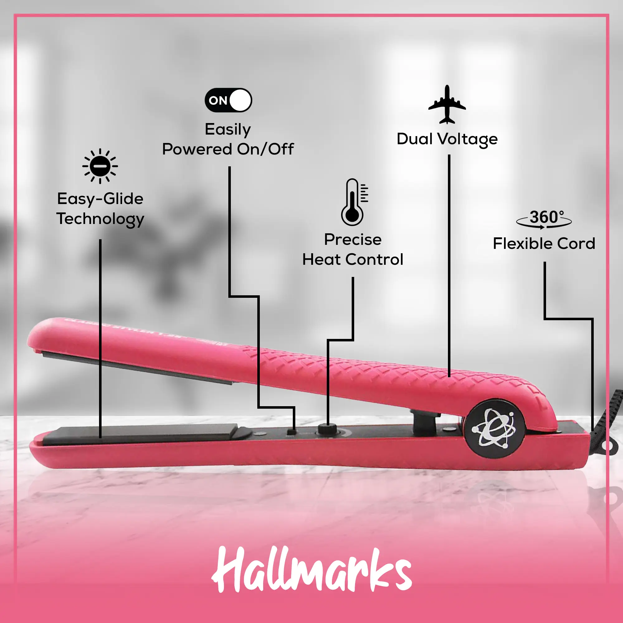 ·GENTLE ON HAIR: This compact hair tool features a tangle-free swivel cord that makes styling a breeze. It has adjustable heat settings so you can regulate the heat to your comfort and hair type, ensuring sleek, glossy tresses with minimal effort.